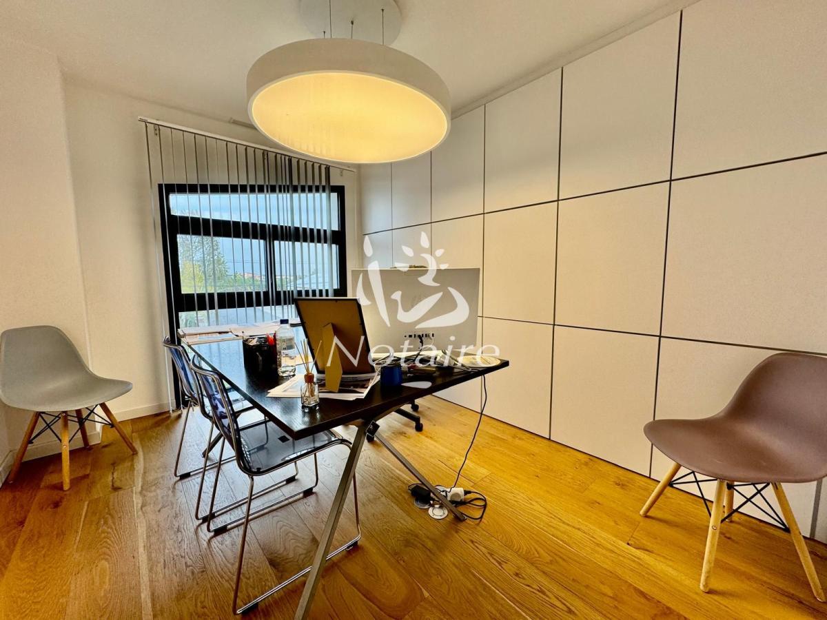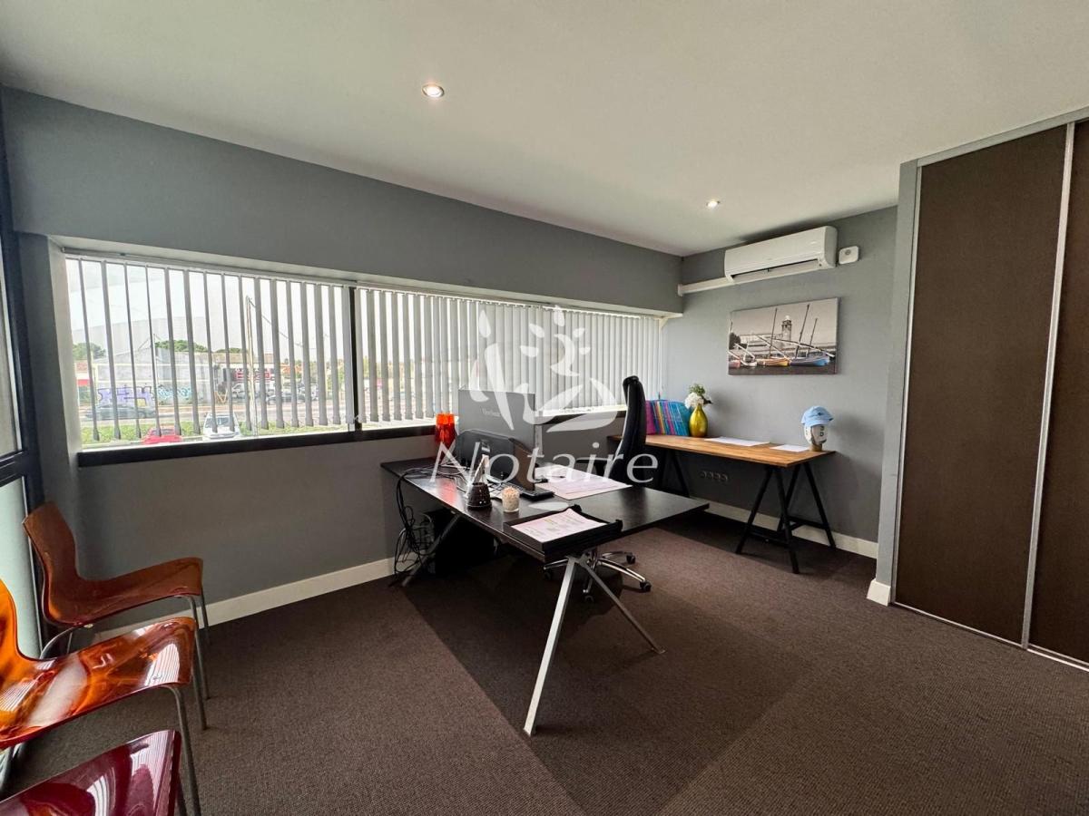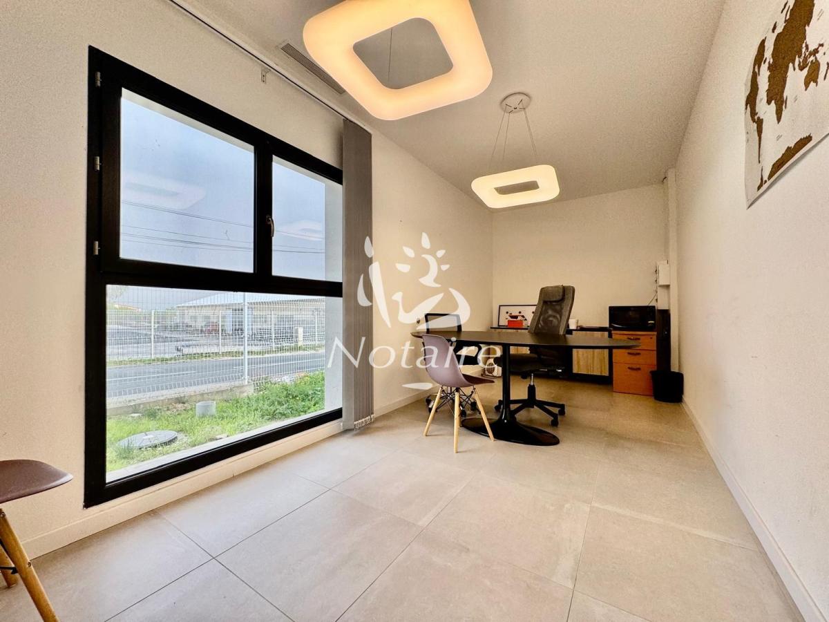 - Au premier étage : D'un second espace ouvert (salle de réunion ou espace coworking), de sept bureaux modernes et d'un WC. Il est à noter que la conception du bâtiment permet la création d'un appartement T2 en regroupant trois bureaux (la porte d'entrée et la séparation sont déjà prévues).