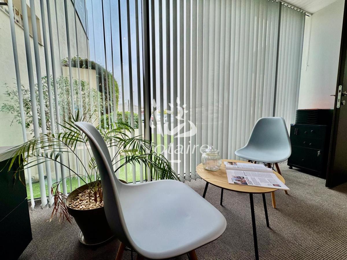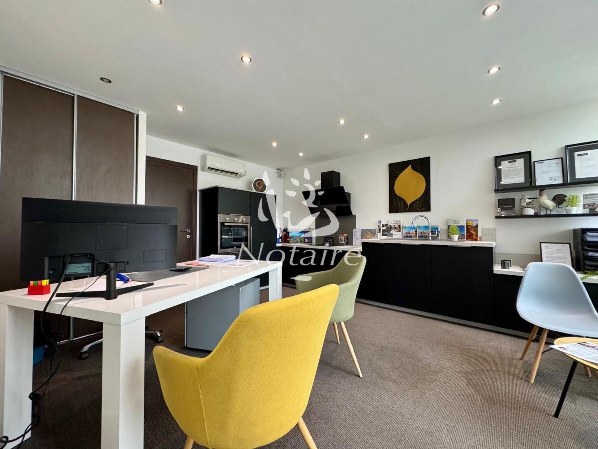 - En rez-de-chaussée : D'un accueil, d'un espace ouvert (salle d'attente ou espace coworking), de trois bureaux dont l'un d'entre eux est pourvu d'une cuisine entièrement équipée et d'un WC.
