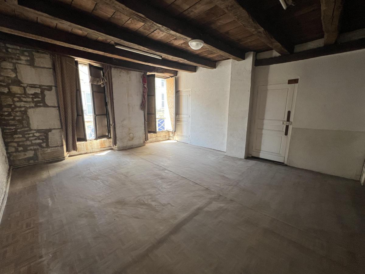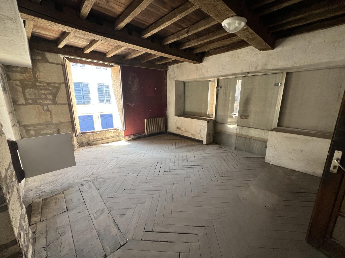 Au rez-de-chaussée : deux pièces ouvrant sur la rue, une grande pièce. une cour avec terrasse.