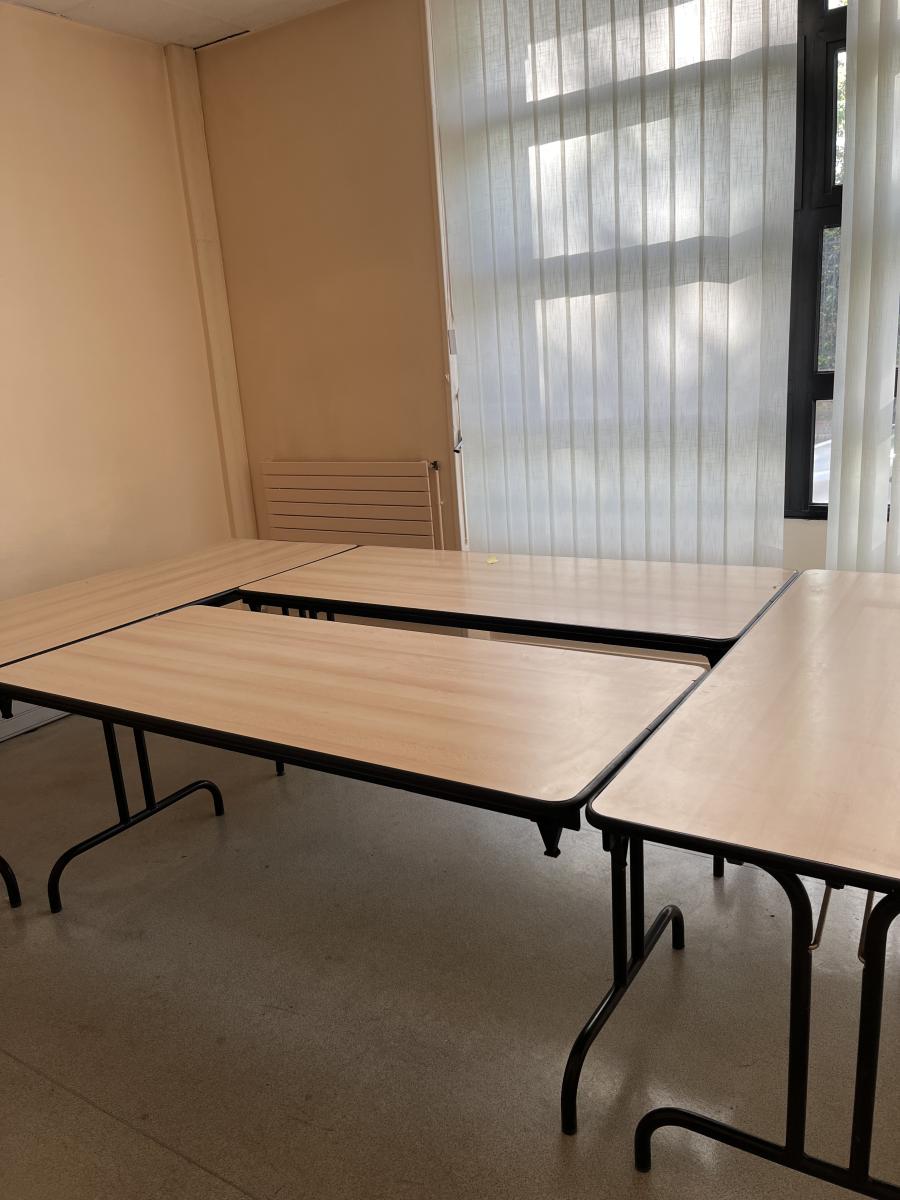 Hall d'accueil, salle de réunion, bureaux, stockage.