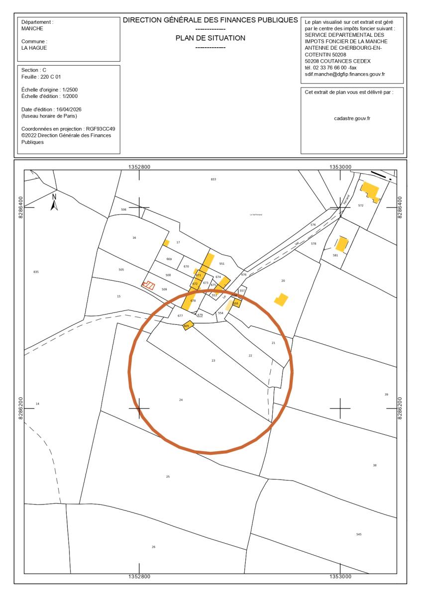 Parcelle C 23 d'une surface cadastrale de 58 m² et parcelle C 605 d'une surface de 4 315 m².