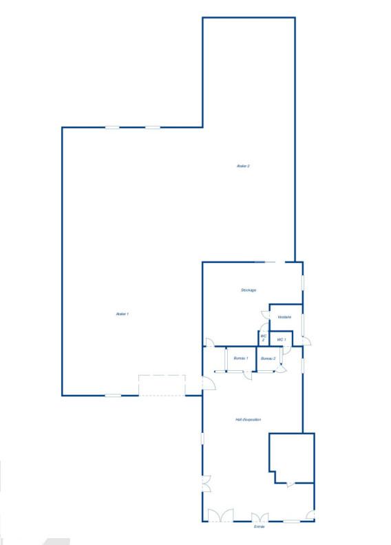 Bâtiment à usage commercial comprenant environ 690 mètres carrées d'atelier, un hall d'exposition d'environ 150 mètres carrées avec deux bureaux, WC, vestiaire et pièce de stockage.
