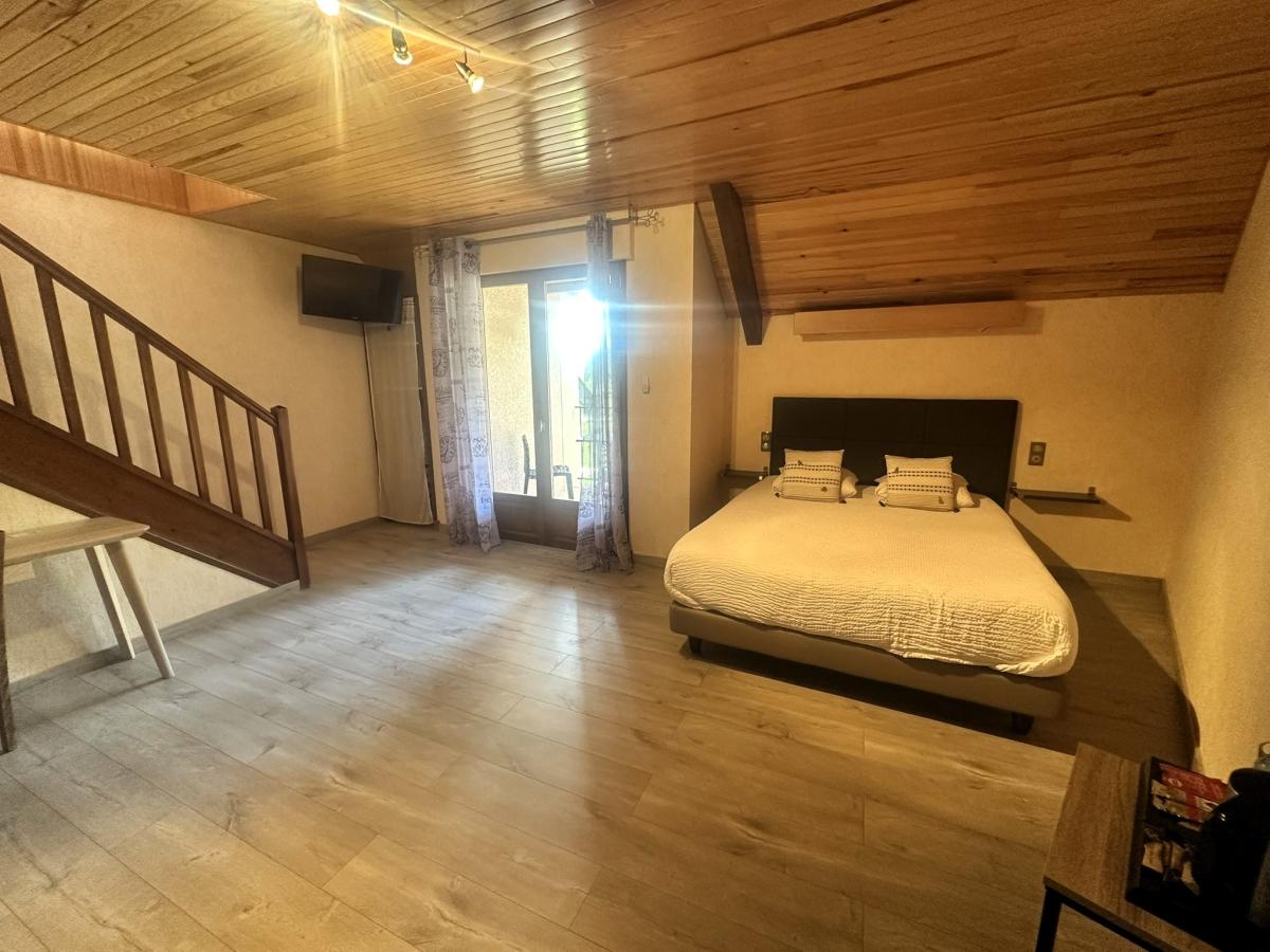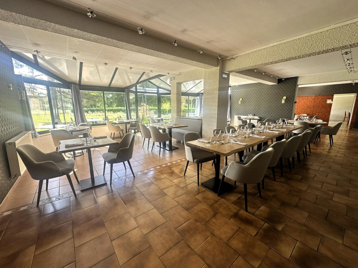 Au rez-de-chaussée, une entrée avec bar et salon mène vers une vaste salle de restauration pouvant accueillir jusqu’à 40 couverts ainsi qu’une seconde salle de réception de 80 couverts, idéale pour banquets, mariages ou séminaires. La cuisine professionnelle, parfaitement équipée, est complétée par une réserve, une cave et une laverie. Une grande terrasse extérieure d’une capacité de 30 couverts vient prolonger la partie restauration et permet de profiter de la belle saison.