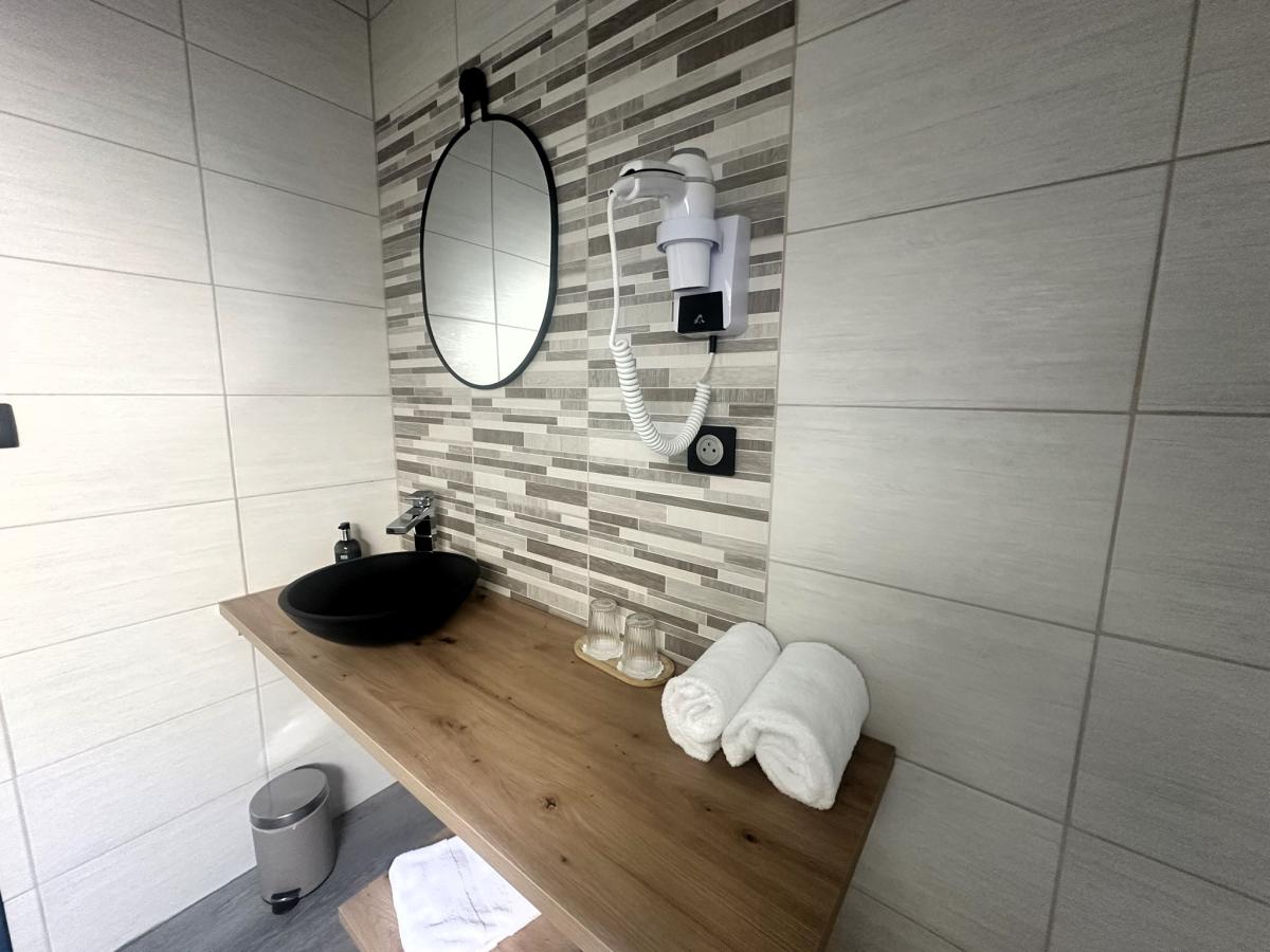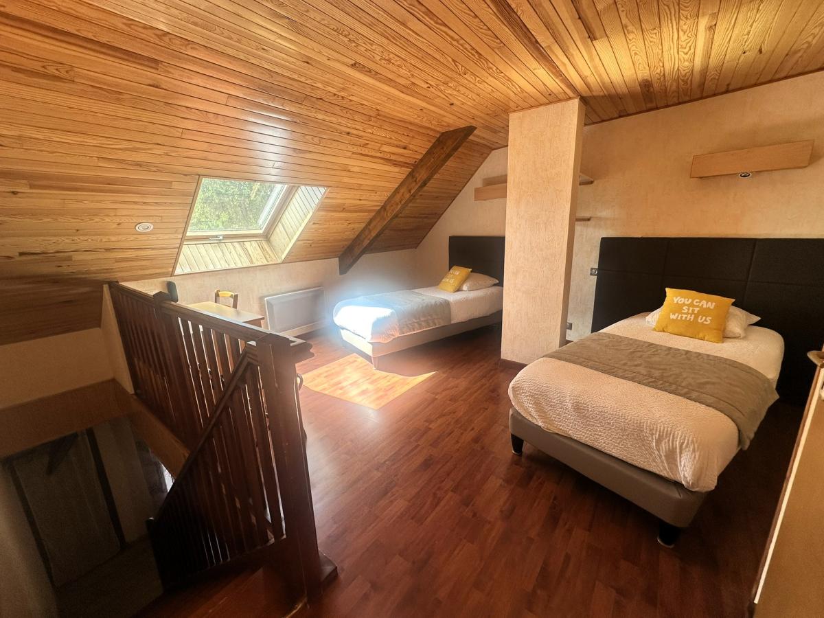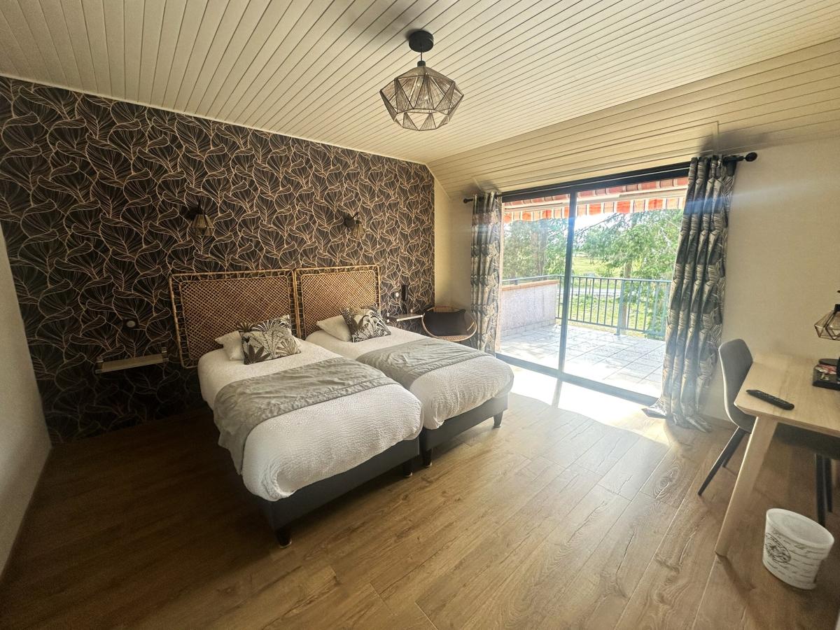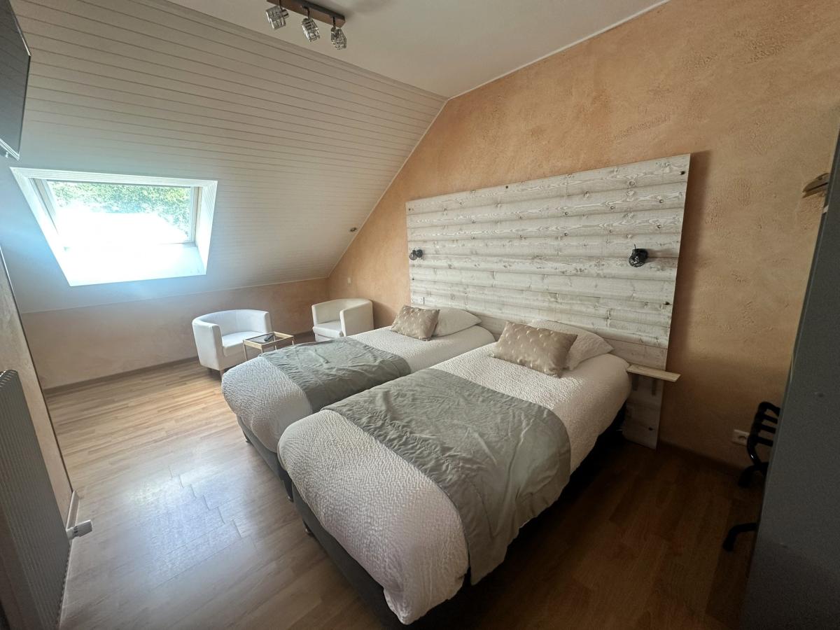 Côté hébergement, l’hôtel dispose de 16 chambres, dont trois au rez-de-chaussée parmi lesquelles une chambre adaptée aux personnes à mobilité réduite. Les autres chambres se situent à l’étage et comprennent plusieurs configurations : chambres doubles, triples ou familiales pouvant accueillir jusqu’à quatre personnes, dont trois en duplex. Certaines chambres bénéficient en outre d’une terrasse privative.