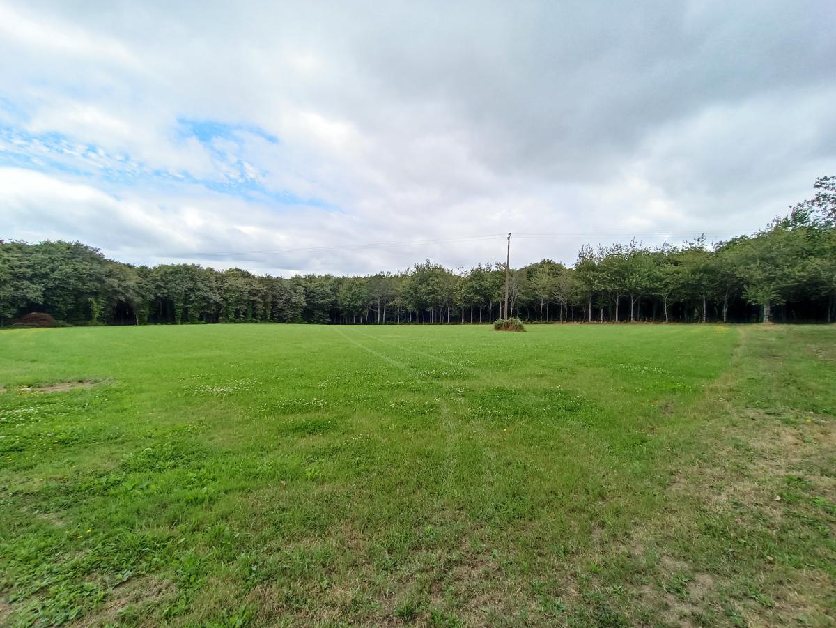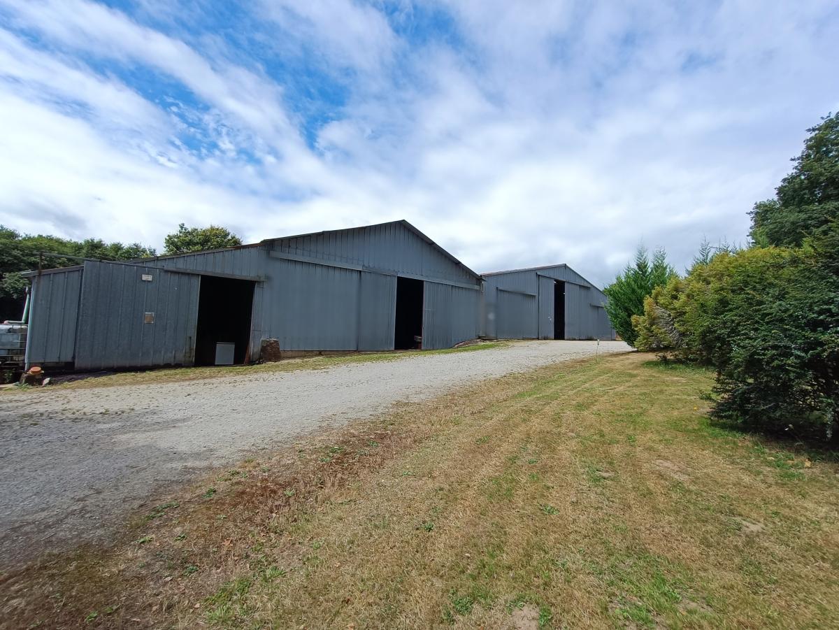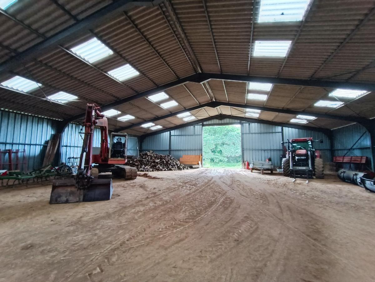 RARE - Un terrain d'agrément majoritairement boisé avec prairie et ayant un grand hangar fermé, construit en trois parties :