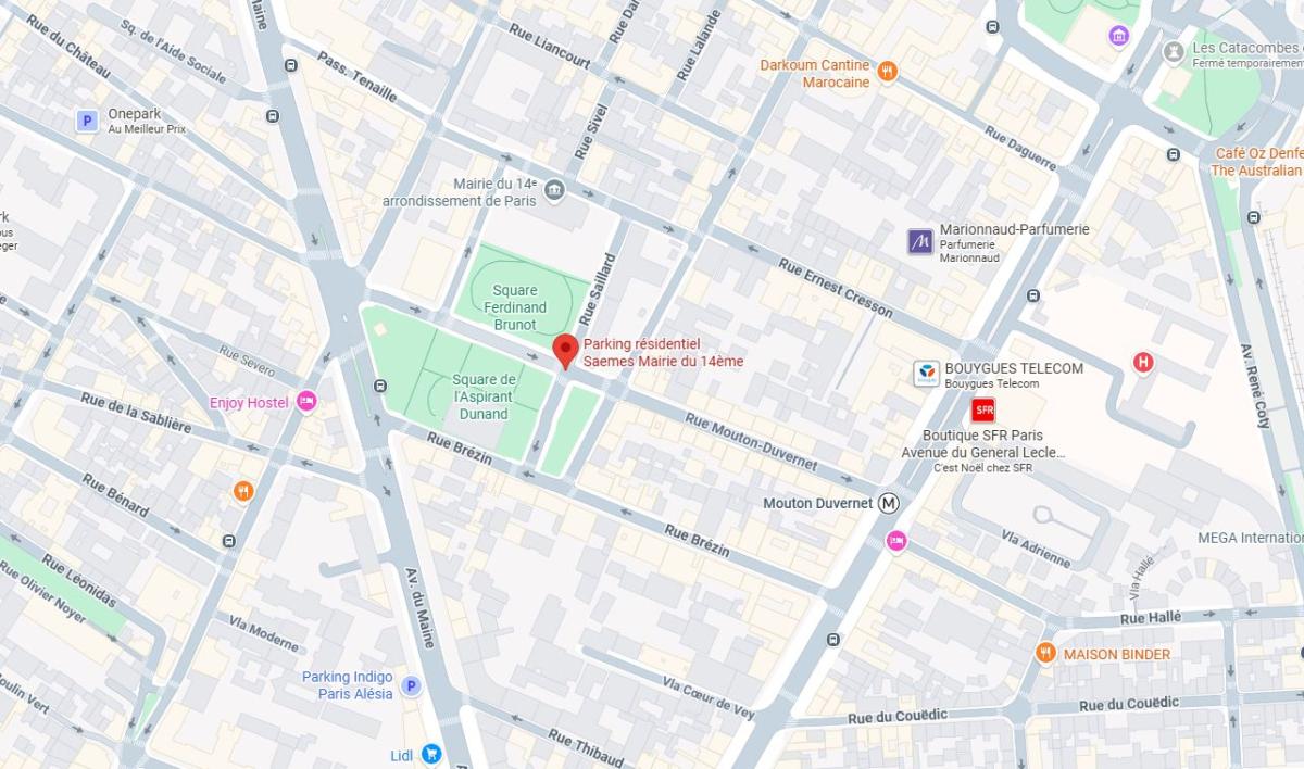 Exclusivité. Sous le Square Ferdinand Brunot / Face à la Mairie du 14ème arrondissement.. Au sein d'un parking récent sécurisé et très bien entretenu SAEMES, DEUX PLACES DE PARKING au 3ème sous-sol en demi-lune. Entrée et sortie par large rampe d'accès. Accès sécurisé par Vigick.