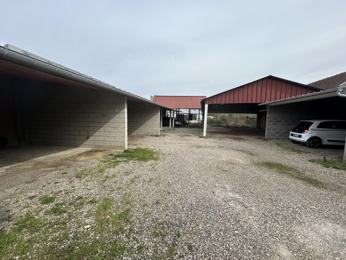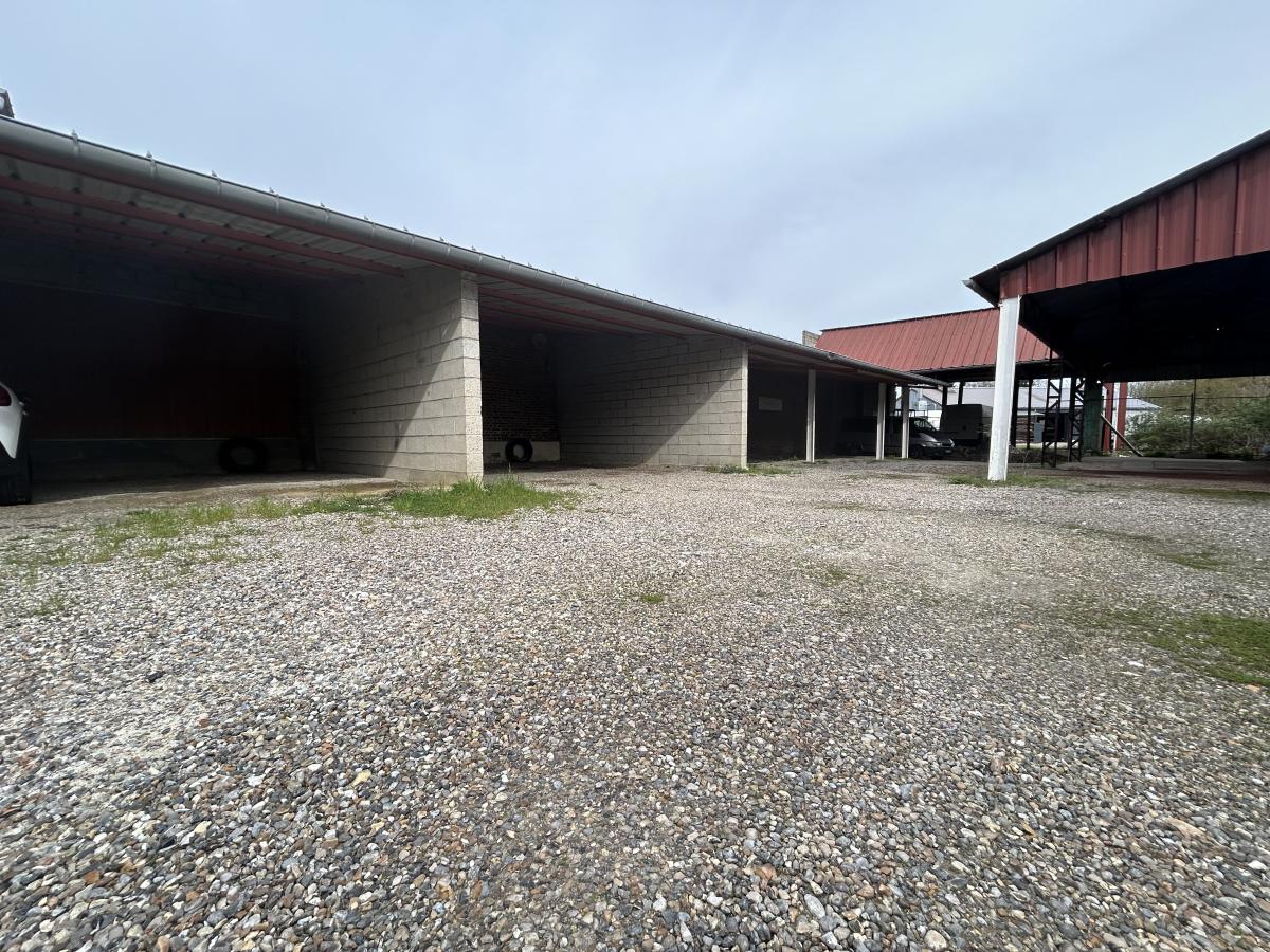 A Corbie, l'Office notarial vous propose ensemble de garages en parpaings et hangars ouverts, le tout érigé sur 856m2 proposant :