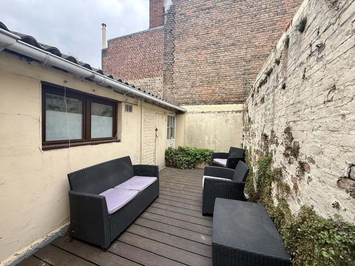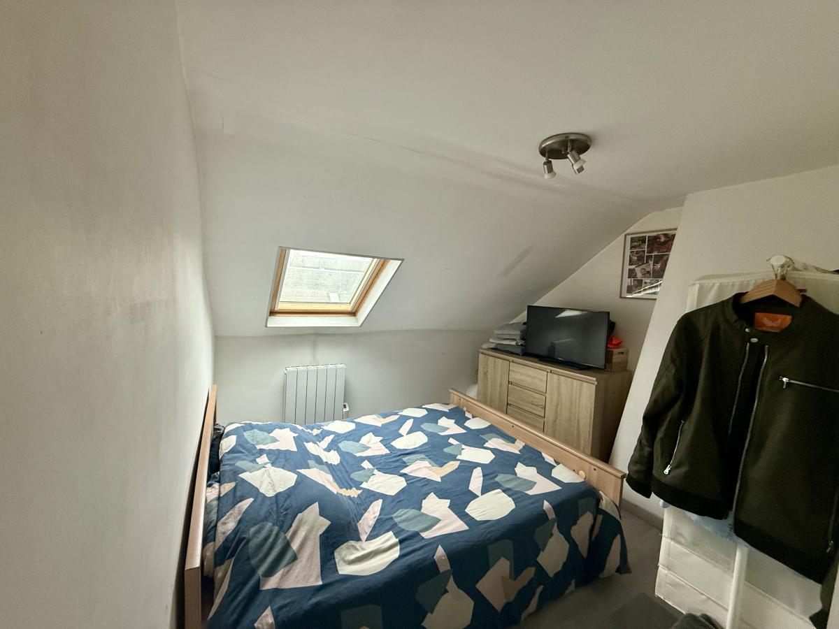 Au 2è étage, sous combles, bel appartement d’environ 21m2 (loyer 450€/mois) comprenant une pièce de vie avec un espace cuisine indépendant, une salle d’eau avec une douche, meuble vasque et wc et une pièce aménagée en chambre
