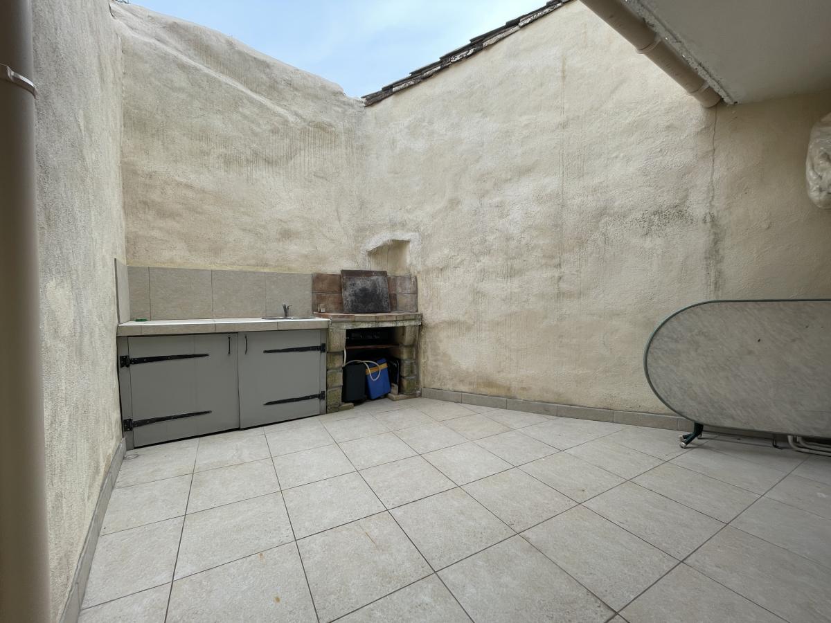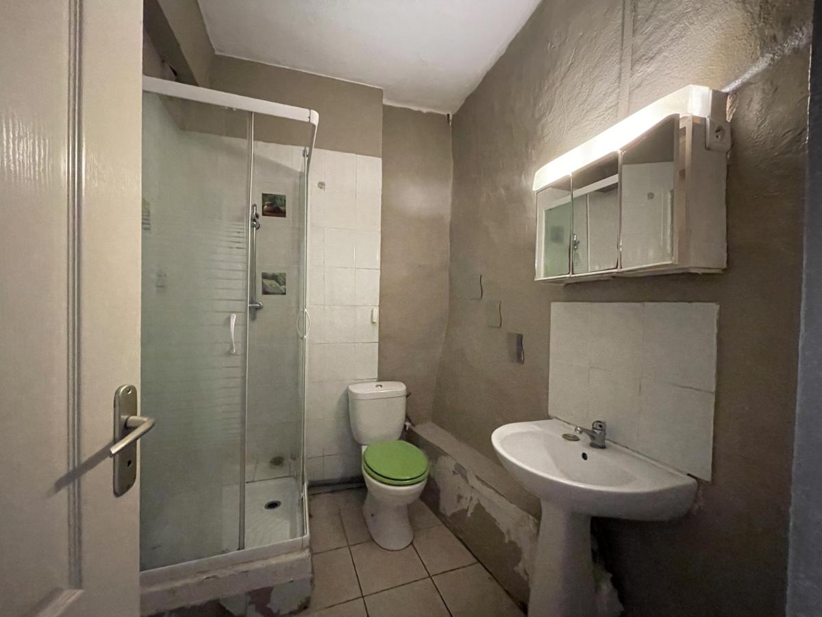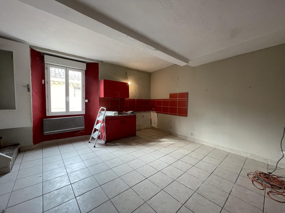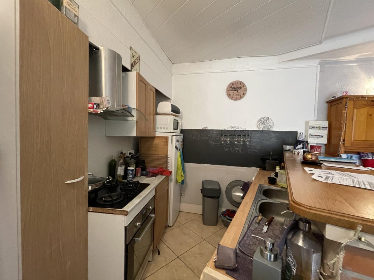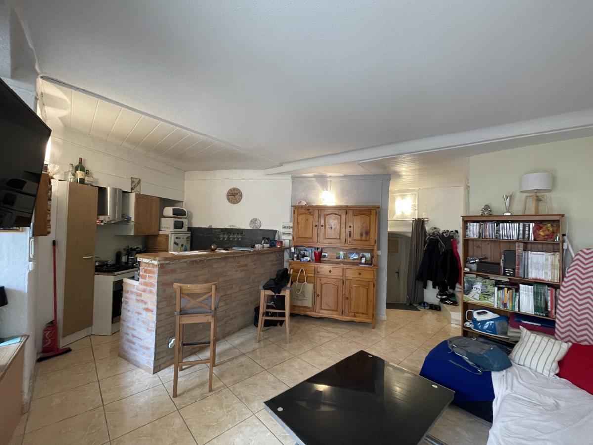 composé d'un séjour cuisine de 21.5m² donnant sur cour, un wc et a l'étage deux chambres et salle d'eau avec wc.