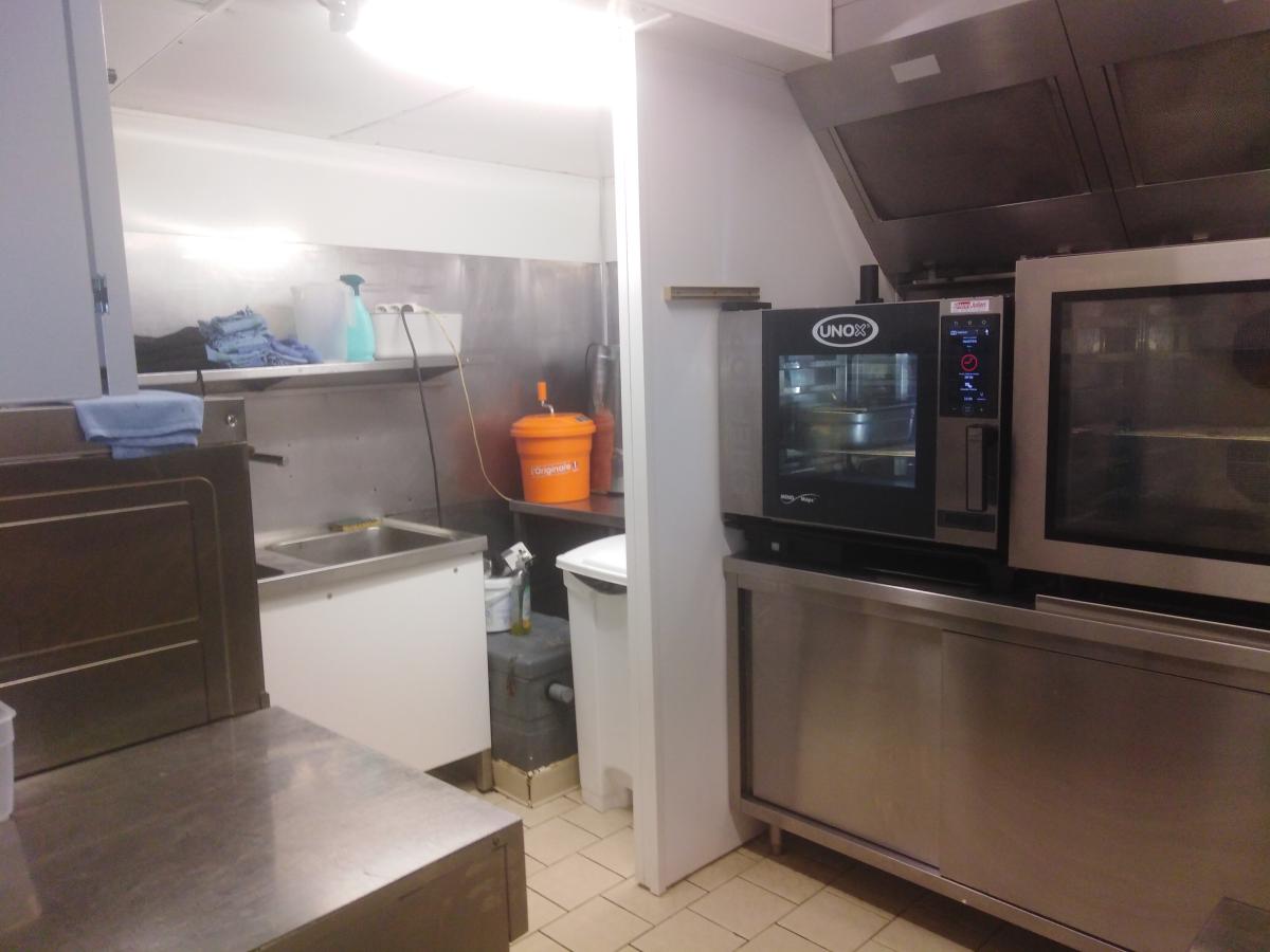 Au rdc : Local commercial ACTUELLEMENT LOUE 2500 € / MOIS : Salle de restauration, sanitaires, cuisine, espace frigo