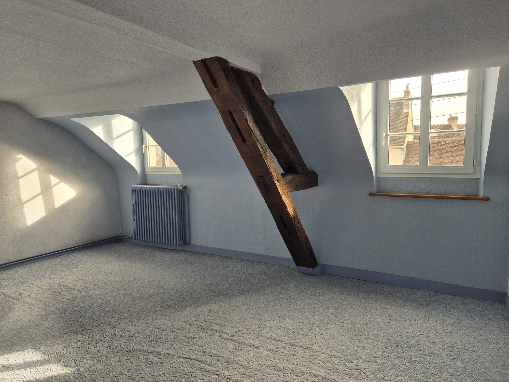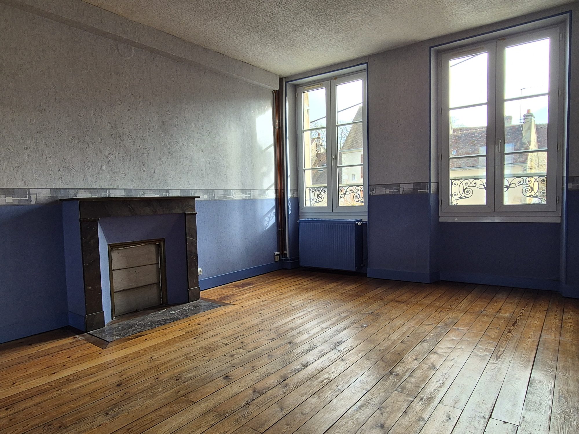 Au premier étage se trouve un appartement en duplex de type 5 d’environ 101 m² comprenant une entrée, un séjour avec cheminée, une salle à manger, une cuisine, une salle d’eau, un WC et un cellier. Le deuxième étage dessert un palier, deux chambres et un bureau.