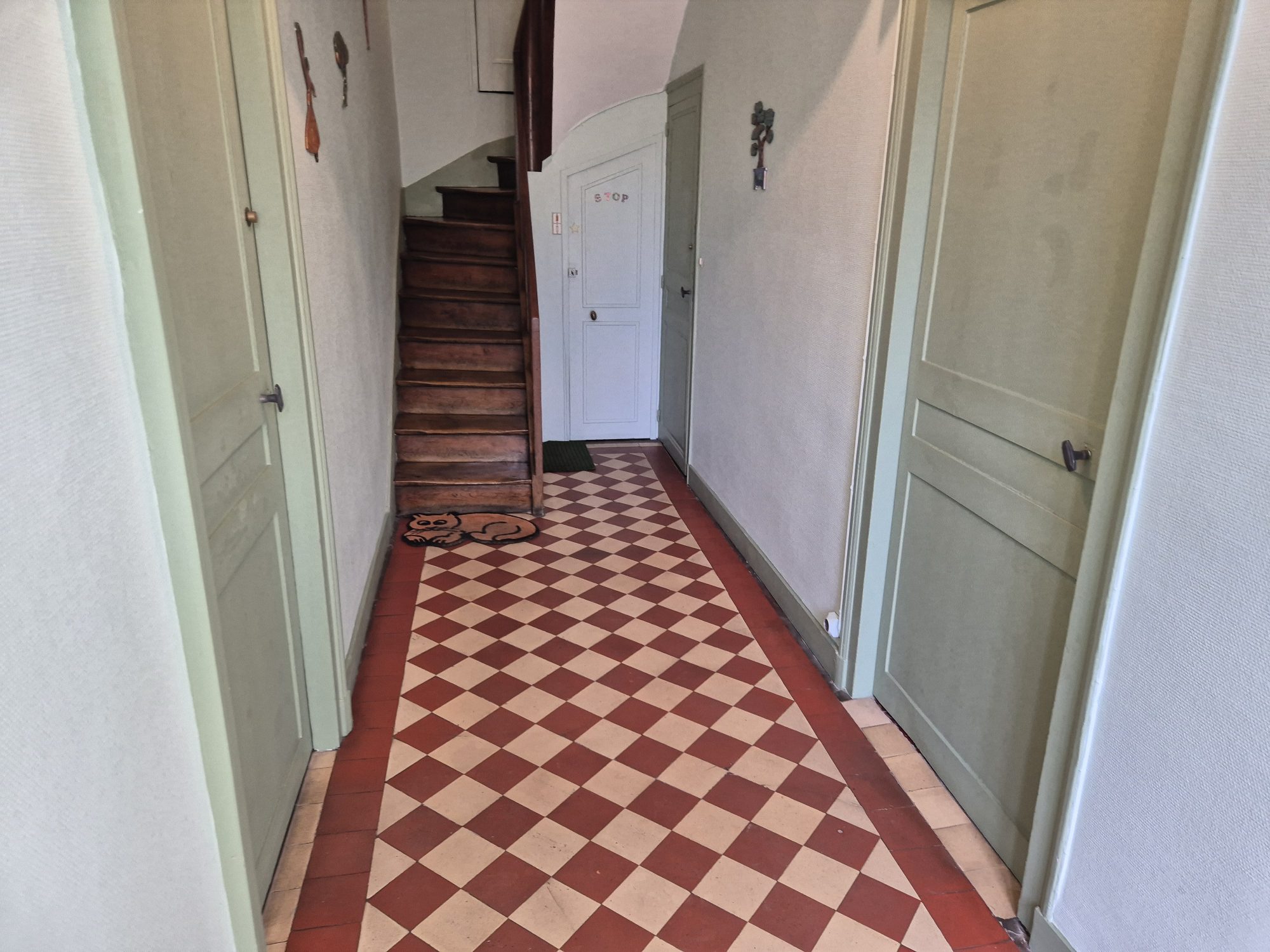 Il se compose, au rez-de-chaussée, d’un hall d’entrée et d’un appartement de type 2 d’environ 50,90 m² comprenant une entrée, un séjour avec cheminée, une cuisine aménagée, une chambre ainsi qu’une salle de bains avec WC. Le rez-de-chaussée comprend également deux pièces et une salle d’eau avec WC à rénover, permettant la création d’un logement supplémentaire d'environ 21 m².