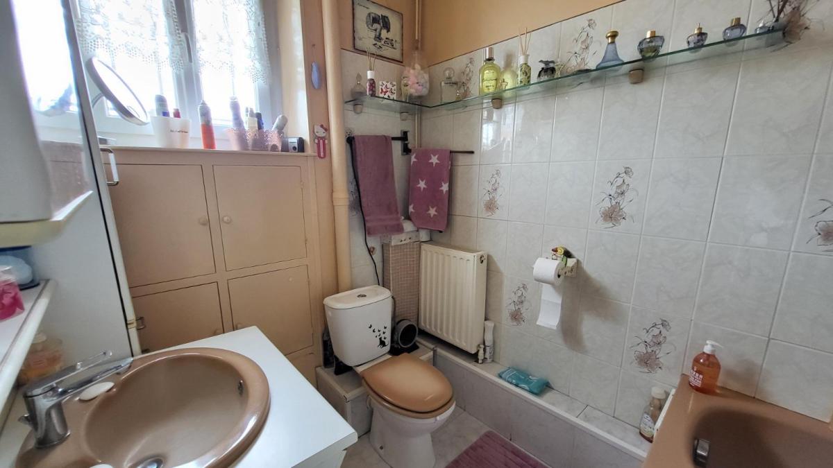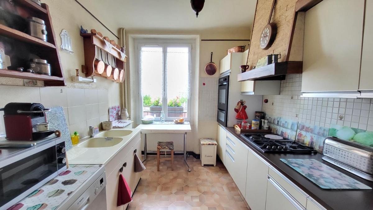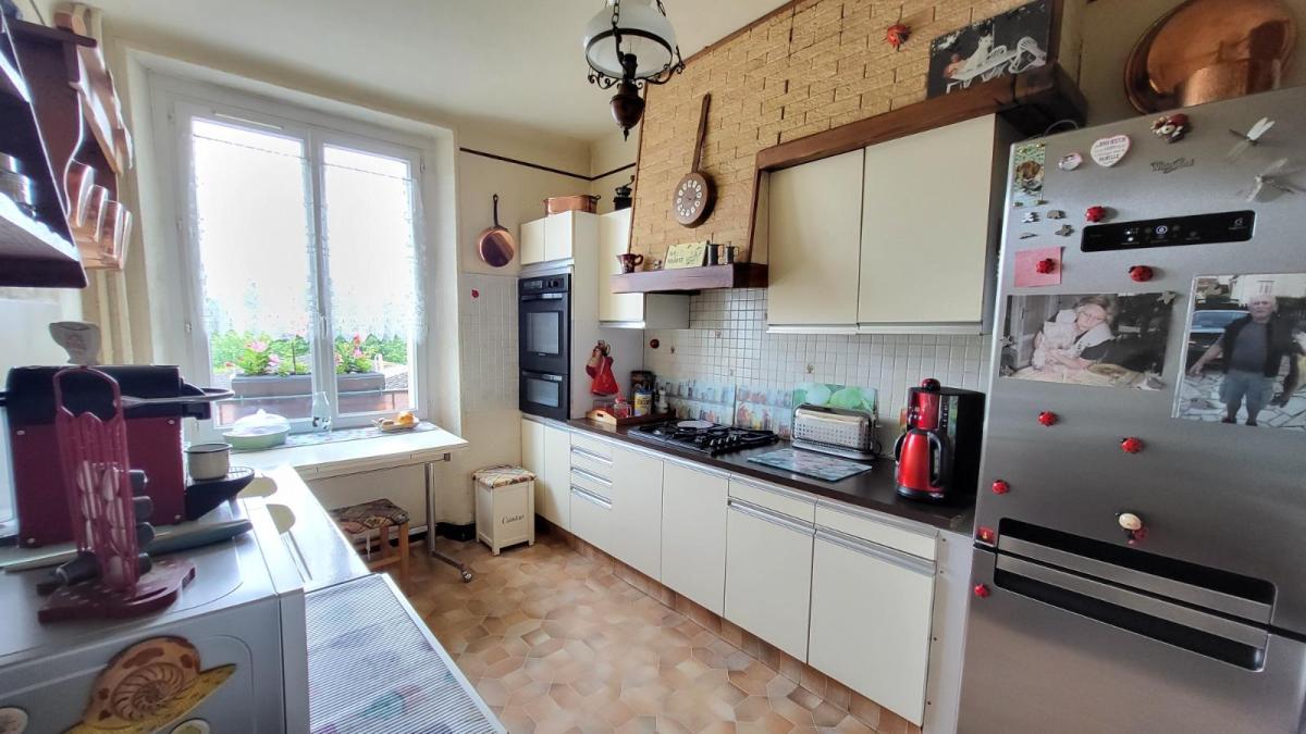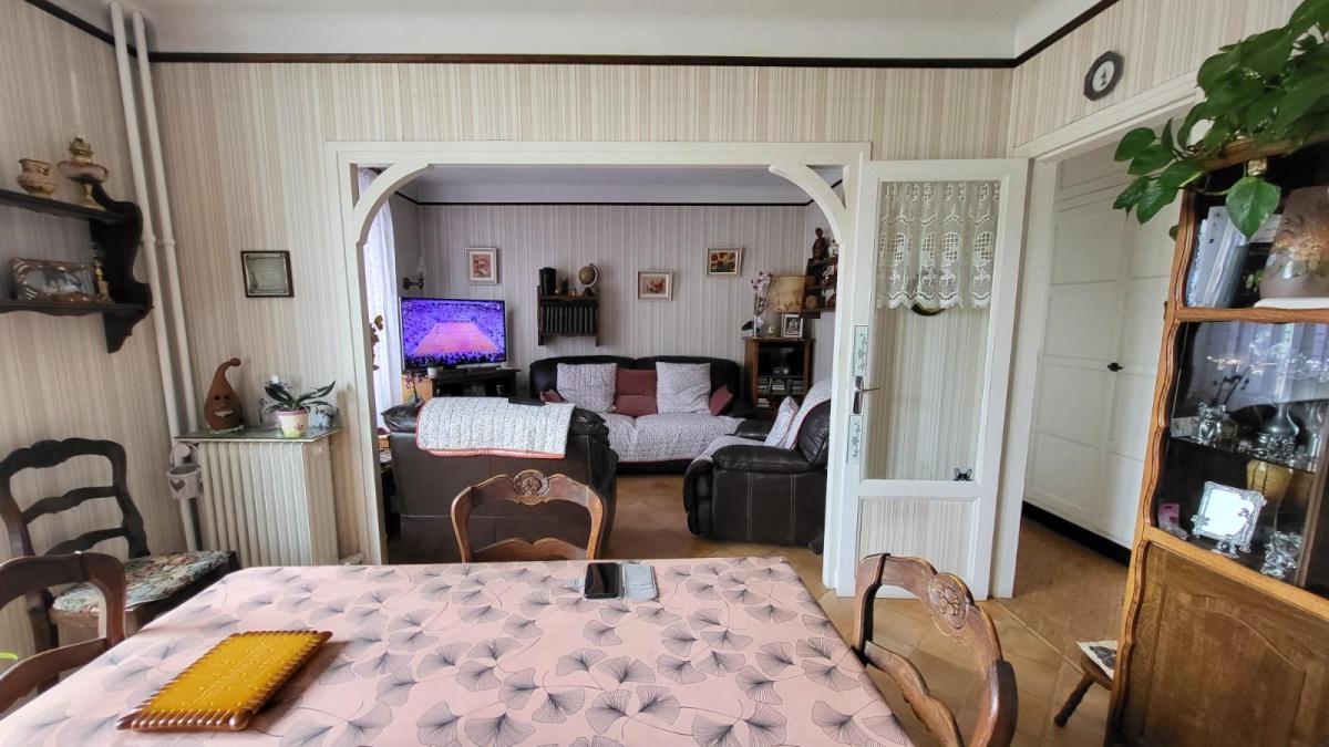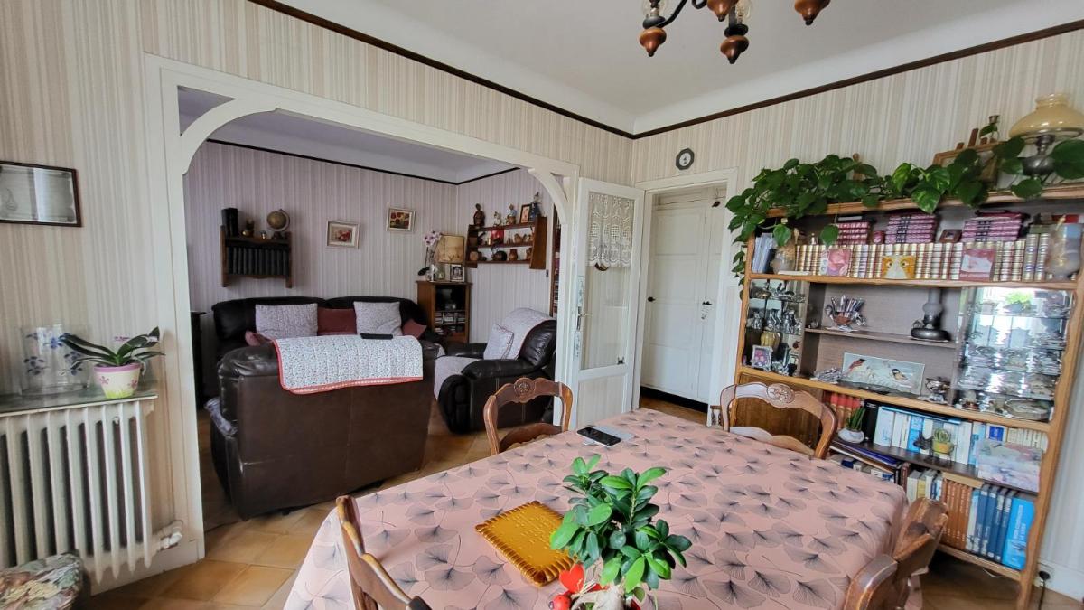 En centre ville avec tous commerces,  immeuble comprenant : Au rez-de-chaussée local commercial d'environ 100 m² en bon état comprenant une pièce avec ancienne vitrine, dégagement avec wc et quatre pièces, réserve ; au 1er étage et par accès indépendant : appartement loué d'environ  comprenant : au rez-de-chaussée : deux garages cimentés; entrée avec escalier donnant sur le 1er étage : cuisine aménagée, séjour, salle de bains avec wc ; à l'étage : couloir et dégagement avec douche, deux chambres, bureau ; chauffage au gaz de ville; sous-sol avec chaudière au gaz ;