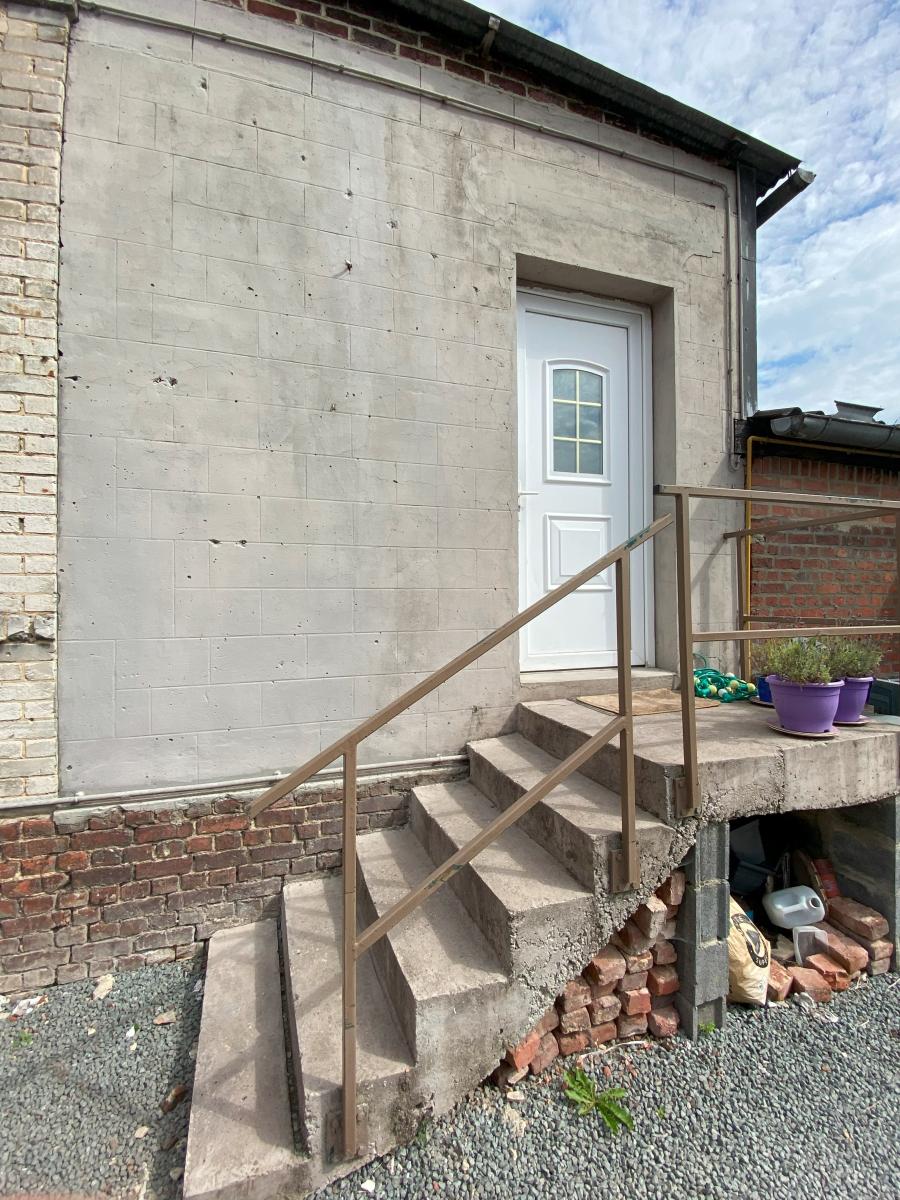 - d'un appartement en duplex situé au 1er et 2eme étage (76m²) , composé d'une pièce de vie, cuisine, salle de bains avec WC, deux pièces et une chambre. Fenêtres PVC Double vitrage, accès par la cour
