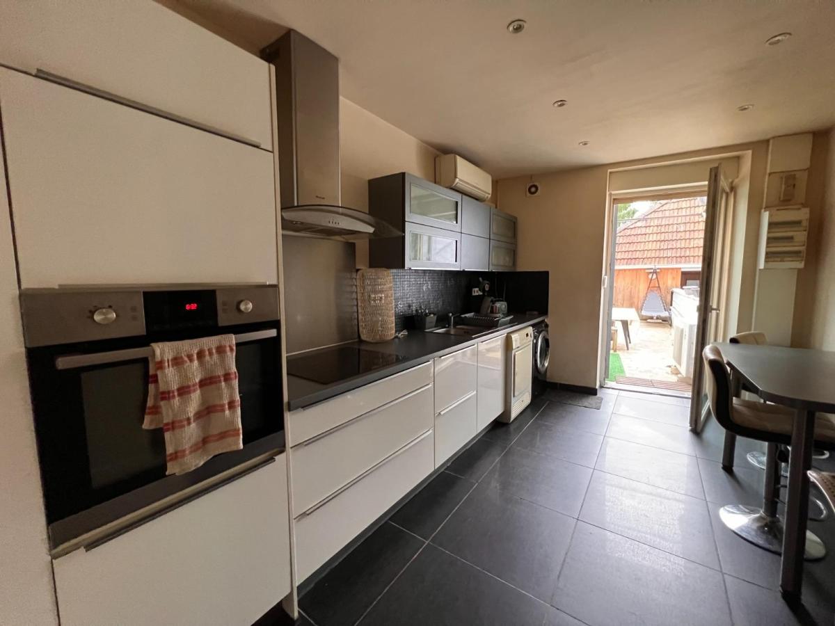 Immeuble d'habitation en partie rénové, actuellement divisé en 2 bâtiments: Le principal est composé : -Au RDC: un appartement à rénover d'une surface d'environ 69 m2comprenant cuisine - salon/séjour - salle de bains - une chambre - terrasse - chaudière gaz de ville. -Au 1er et 2eme étage : un appartement d'une surface d'environ 126 m2 comprenant une entrée - cuisine avec accès terrasse privative - salon/séjour - débarras - WC séparé - salle de bains - 5 chambres - salle d'eau avec WC - grenier aménageable pour une pièce supplémentaire - chauffage par pompe à chaleur + radiateurs électrique. un garage, plusieurs local de stockage ainsi qu'une cave complète ce bien. Isolation extérieure de 2020 + isolation du plafond de la cave - fenêtres pvc double vitrage - pompe à chaleur de 2012. Le bâtiment secondaire sur l'arrière: -Cet ancien atelier d'environ 124 m2 est composé de 3 étage: -au RDC: un espace de stockage -au 1er étage: une pièce de 10m2 et une pièce de 32 m2 -au 2eme étage: un dégagement et une pièce de 32m2 Un ancien monte charge non fonctionnel dessert chacun de ces étages. Bien vendu soumis au statut de la copropriété horizontales sans syndic de copropriété et sans aucune charge annuelle. Pas de procédure en cours dans la copropriété Les informations sur les risques auxquels ce bien est exposé sont disponibles sur le site Géorisques : www. georisques. gouv. fr