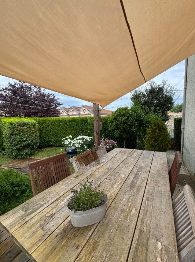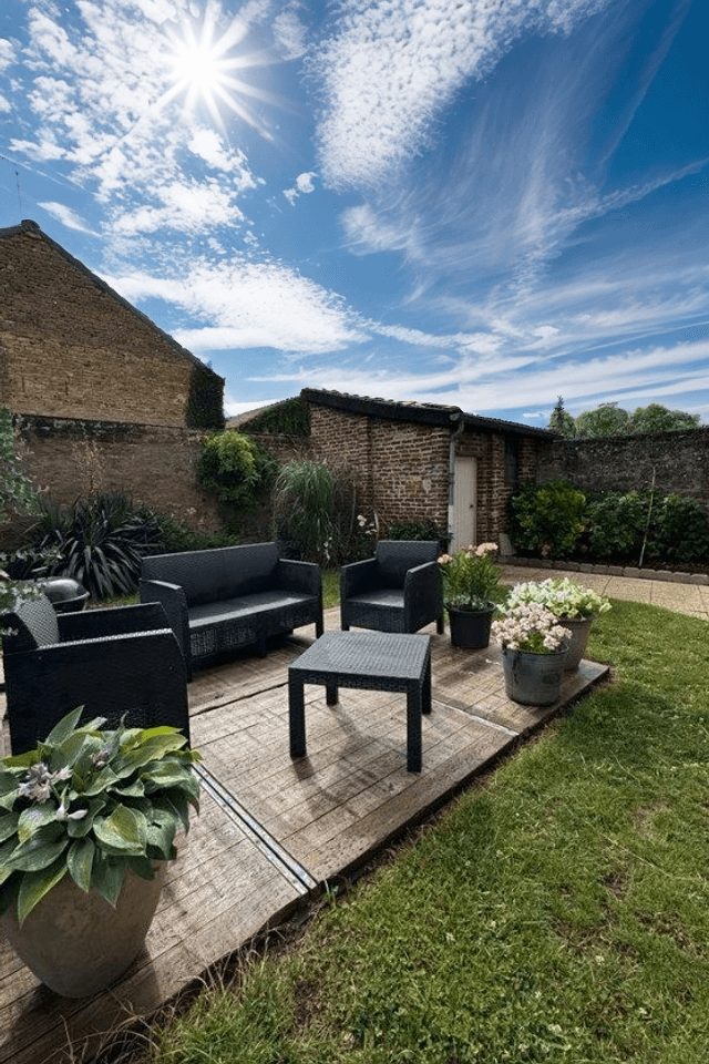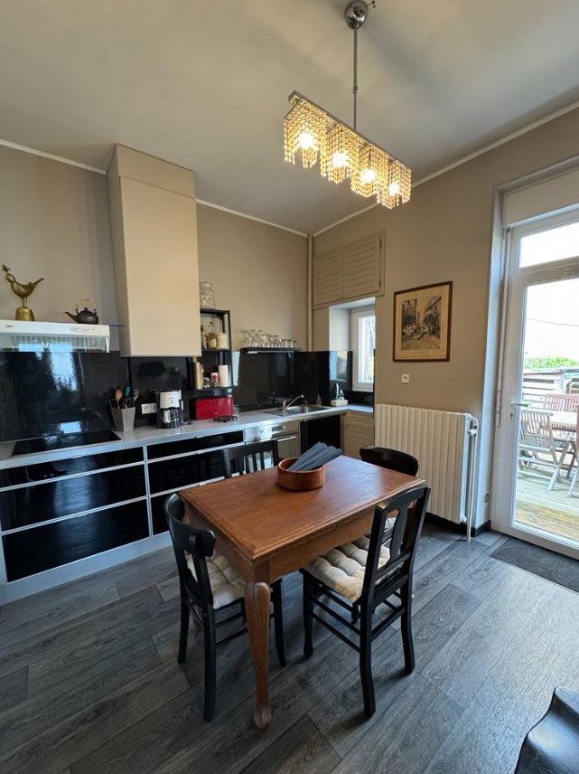 Au RDC: un appartement comprenant une entrée, une cuisine, un séjour, une chambre, un bureau, une salle de douches. Une terrasse avec un terrain.