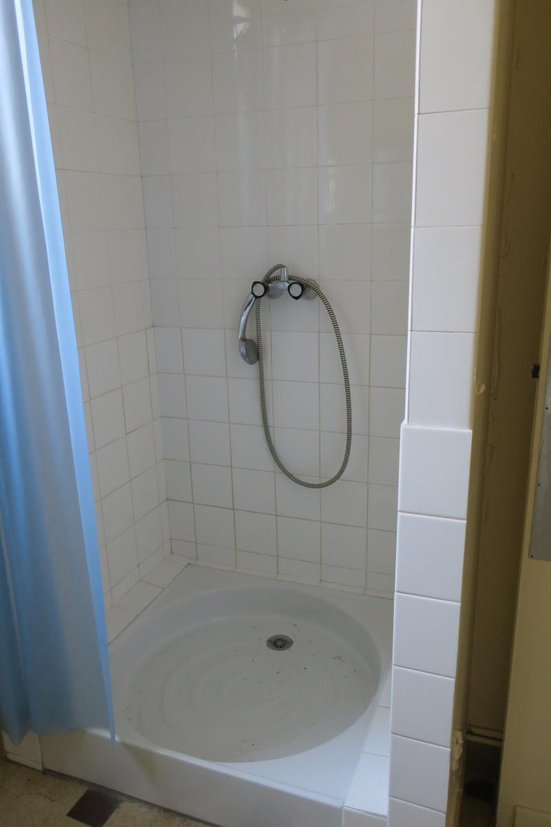 Appartement T1 bis, rez-de-chaussée sur élevé ( 24,31 m²), libre : Entrée, pièce principale, couloir, cuisine avec douche, toilettes. Cave. Débarras dans la cour.