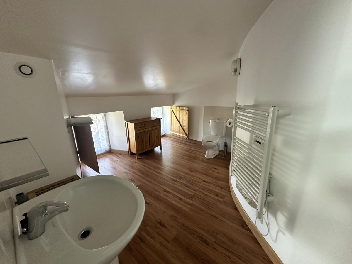 - Au premier étage, un appartement avec une chambre loué 370€/mois HC et un plateau à rénover.