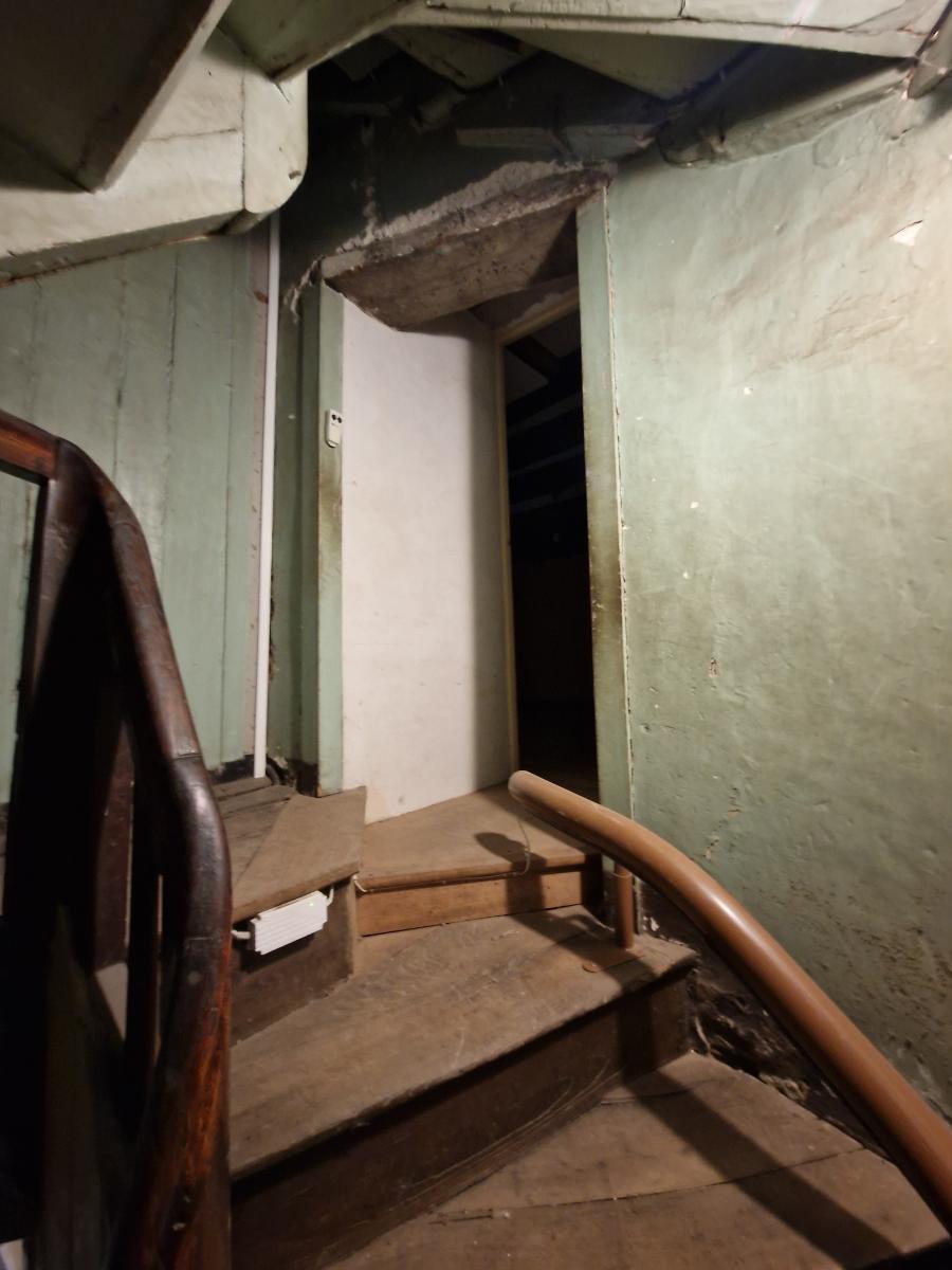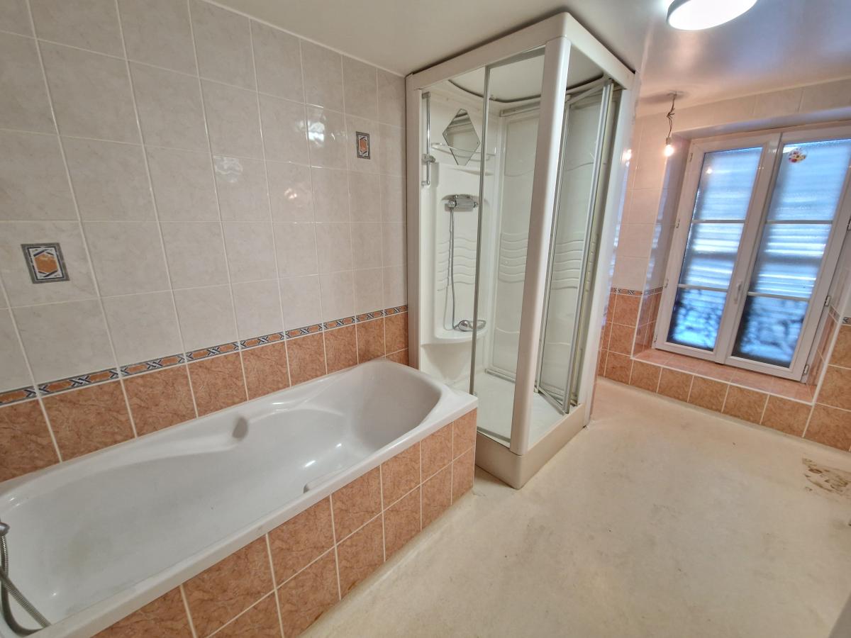- Rez-de-chaussée : local commercial loué 600€/mois (épicerie), une grande entrée sur plancher (ancien local), débarras donnant accès à la cour arrière et à un petit bâtiment à usage de remise avec accès jardin,