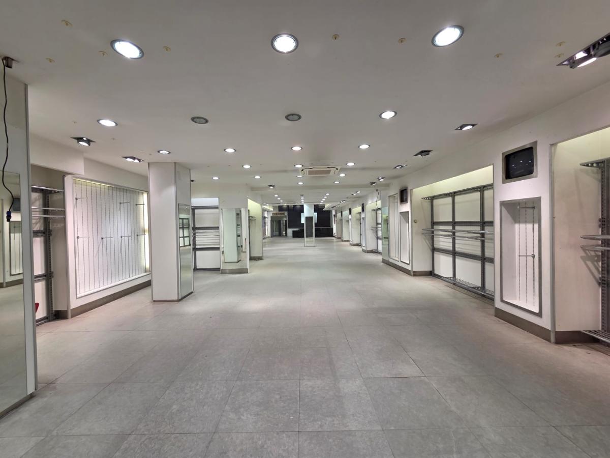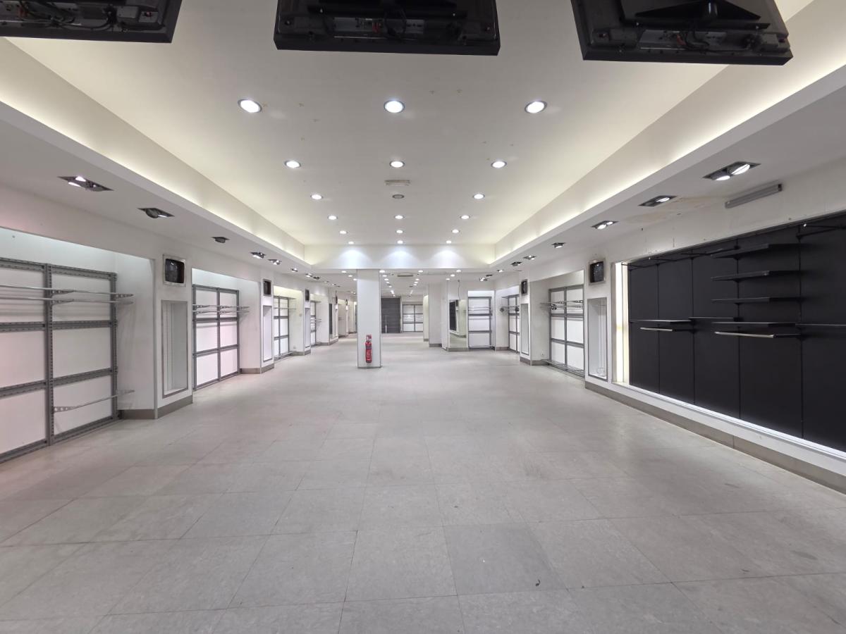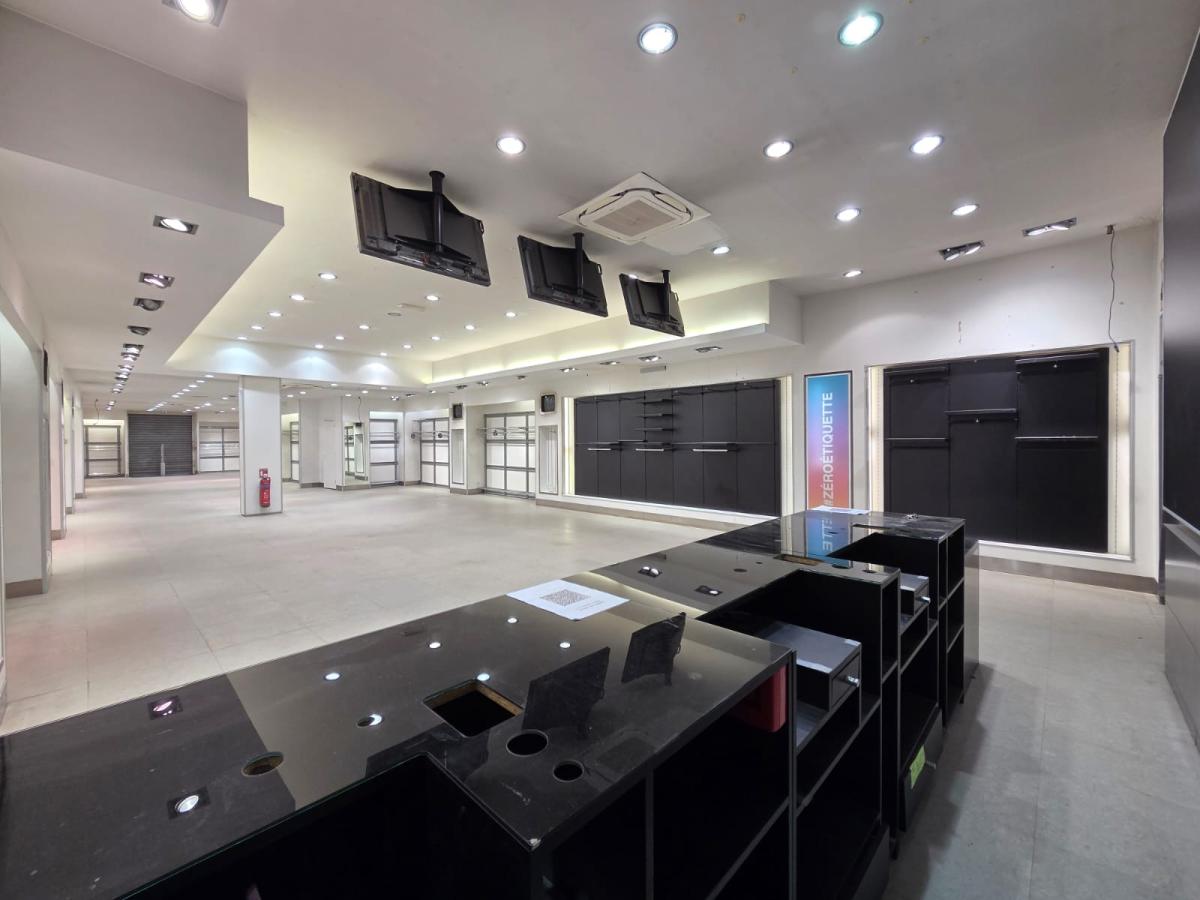 *Rez-de-chaussée – env. 244,5 m² : Grande boutique avec vitrine sur rue (env. 218 m²), cabines (26 m²), dégagement et sortie de secours à l’arrière.