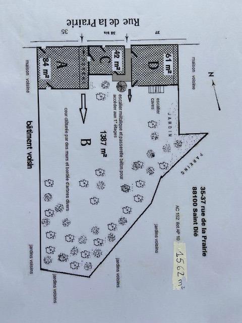 Sur un terrain clos de 1562m² - un ensemble immobilier composé de : A/ au n°35 de la rue : une maison d'habitation - 95,64m² hab. S/sol : cave/chaufferie avec compteur d'eau général et sous compteurs pour tous les autres appartements RDC : entrée desservant cuisine de 9,5m² et une pièce de 17m² 1er étage : 3 chambres de 18,5m², 13m² et 10m² - SDB de 5m² - WC - dégagement - 2ème étage : Grenier d'environ 45m²>1m80 Rénovation de 1985 (façades, toiture, électricité et chaudière à condensation) - Chauffage gaz - Fenêtre PVC B/ au n°35 Bis de la rue : un bâtiment sur 2 niveaux - RDC : une pièce d'environ 40m² louée à la Mission Evangélique 228,67 €/trimestre - 1er étage : une pièce accessible par l'escalier métallique sur l'arrière du bâtiment. C/ au n°37 de la rue : un immeuble composé de 2 logements accessible par l'arrière et élevé sur caves par l'extérieur - RDC : un appartement de type F2 de 43,17m² : entrée de 7m² - cuisine de 10m² - 1 pièce sur jardin de 14m² - 1 chambre/rue de 8m² - SDB - WC Chauffage gaz - Double vitrage et volets roulants - Vide - 1er étage : un duplex de type F4 de 89,29m² Loué 419 € + 31 € de charges - Bail du 1er juillet 2001 Rénovation complète dans les années 85 : isolation, électricité, chauffages au gaz, fenêtres PVC, ravalement des façades, et toitures. Si on laisse : A/ 496m² avec la maison, C/ 195m² avec l'immeuble C et le 1er étage du B, Il reste une parcelle de terrain sur l'arrière de 871m²