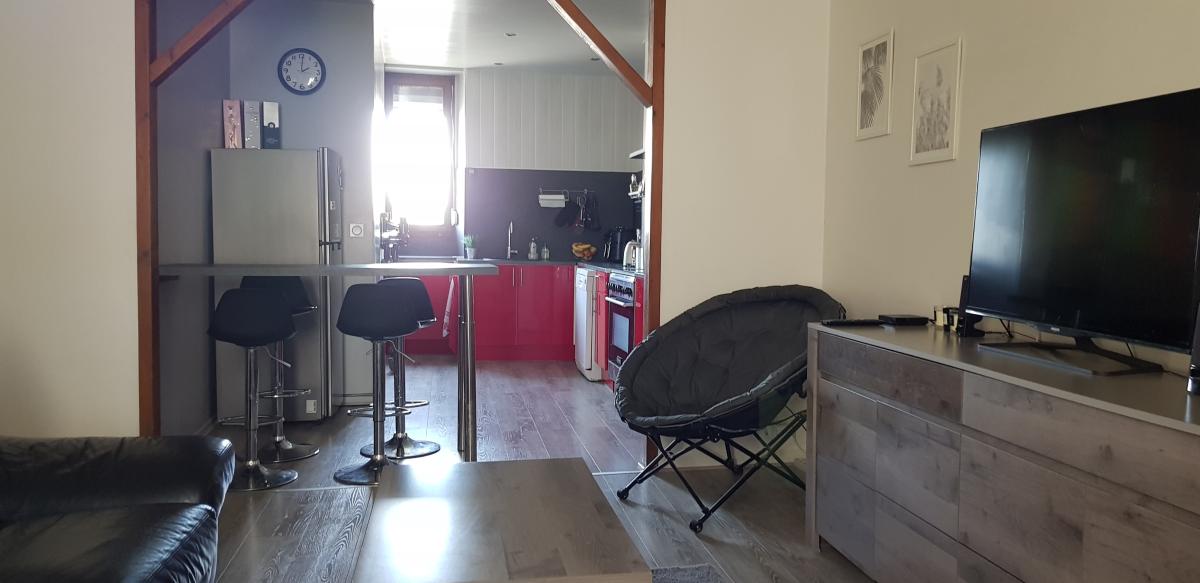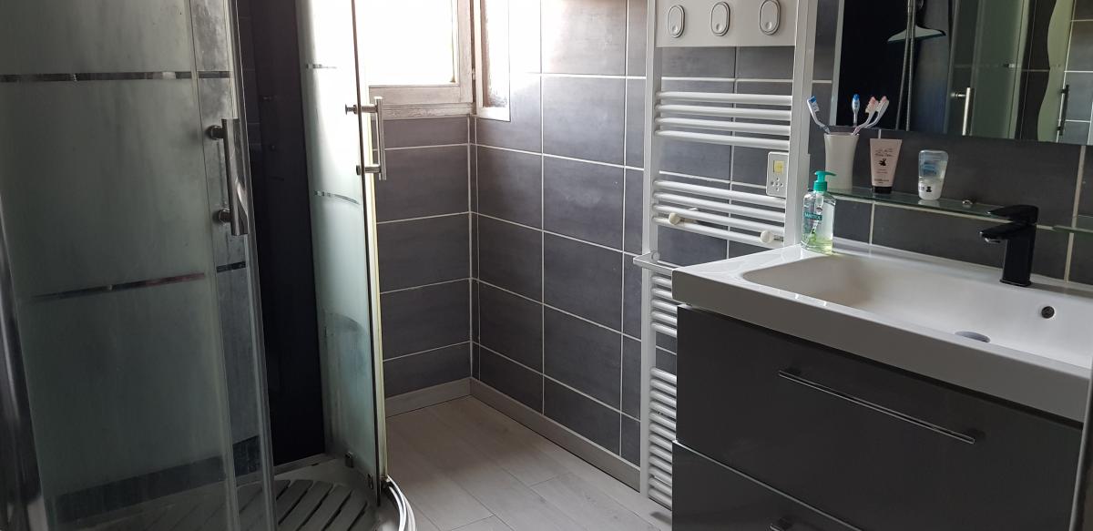 A l'étage : dégagement, salon, cuisine ouverte, trois chambres dont une avec dressing, salle de douches, water-closet.