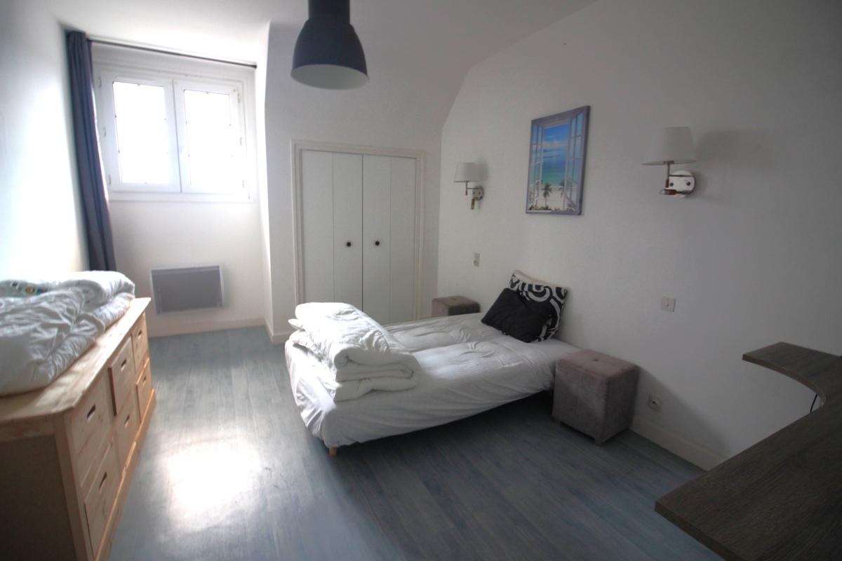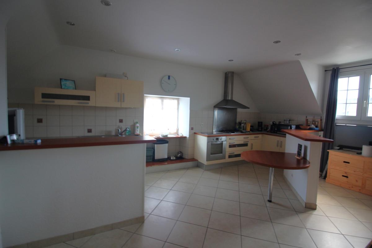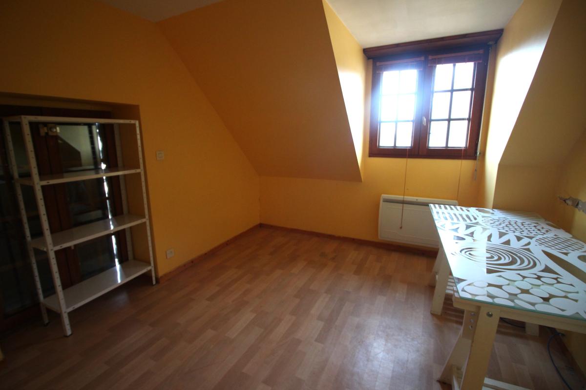 - A l'étage : débarras, point d'eau avec WC, réserve, bureau, cuisine équipée sur séjour-salon, trois chambres dont une avec salle de bains, salle d'eau avec WC, terrasse.