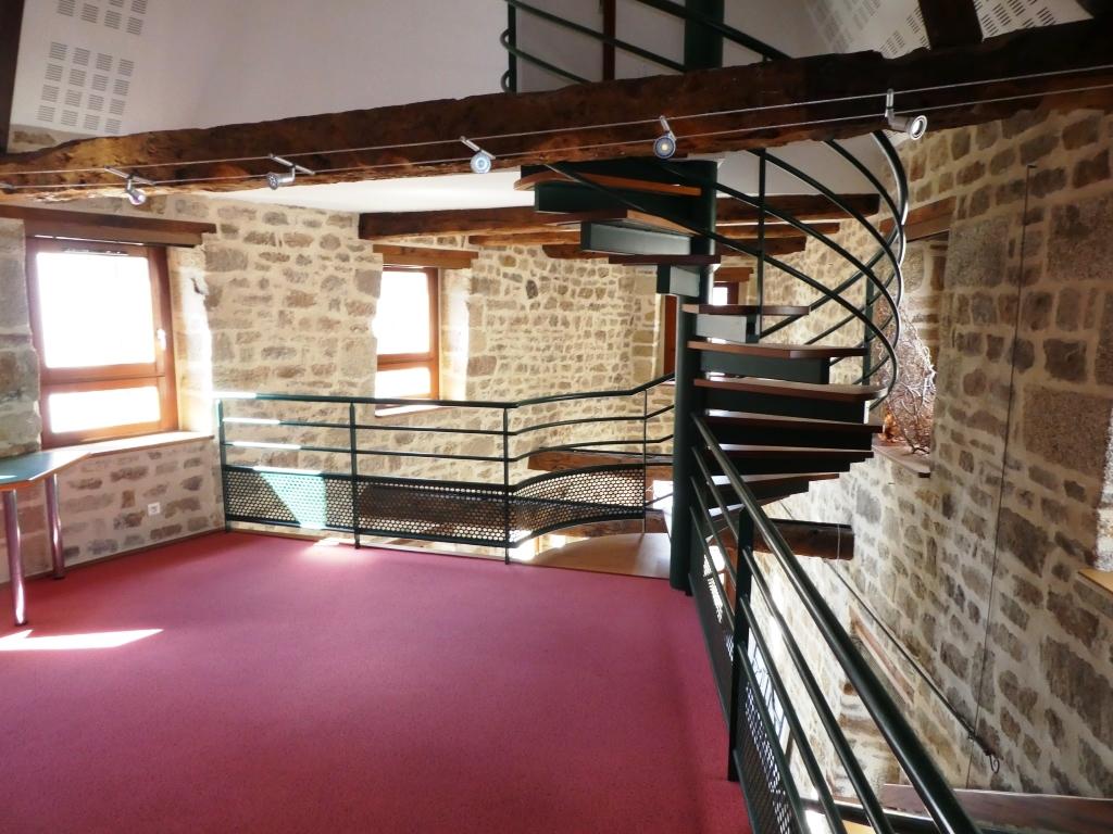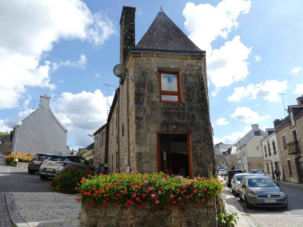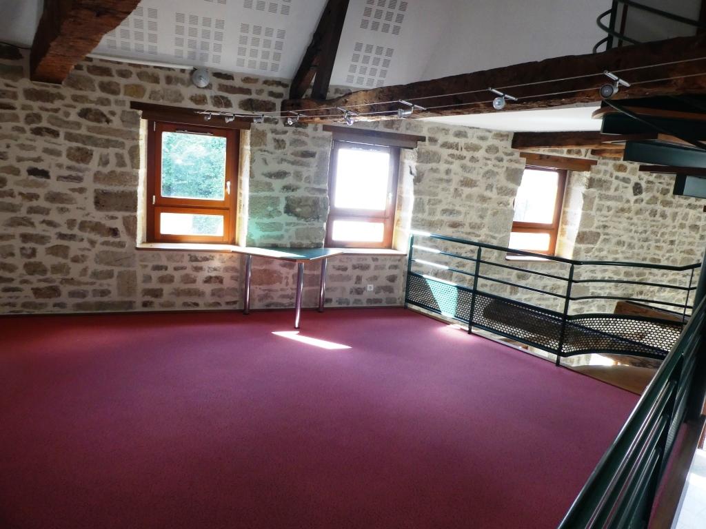 En plein centre de la commune de GUEMENE SUR SCORFF (56160), joli bâtiment en pierres, rénové tout en conservant son caractère authentique, avec une large entrée, pièce avec bureau et coin cuisine, cabinet de toilettes.