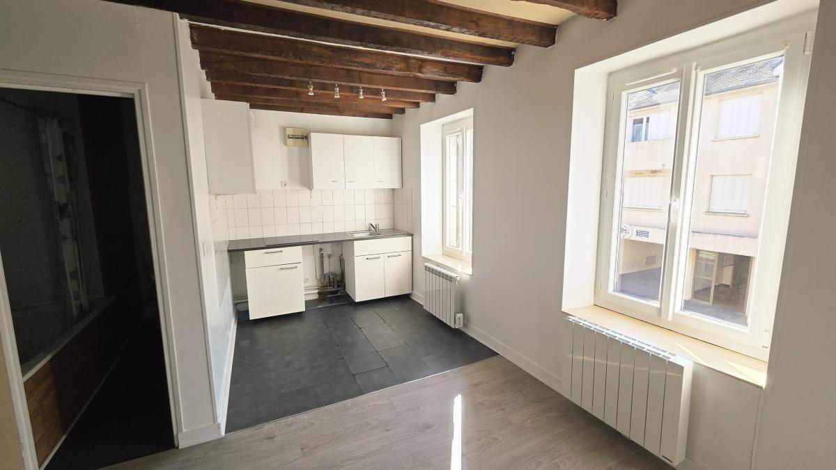 1°) un appartement de type 2 au 1er étage : entrée sur séjour avec cuisine ouverte, une chambre, salle de bains avec WC.