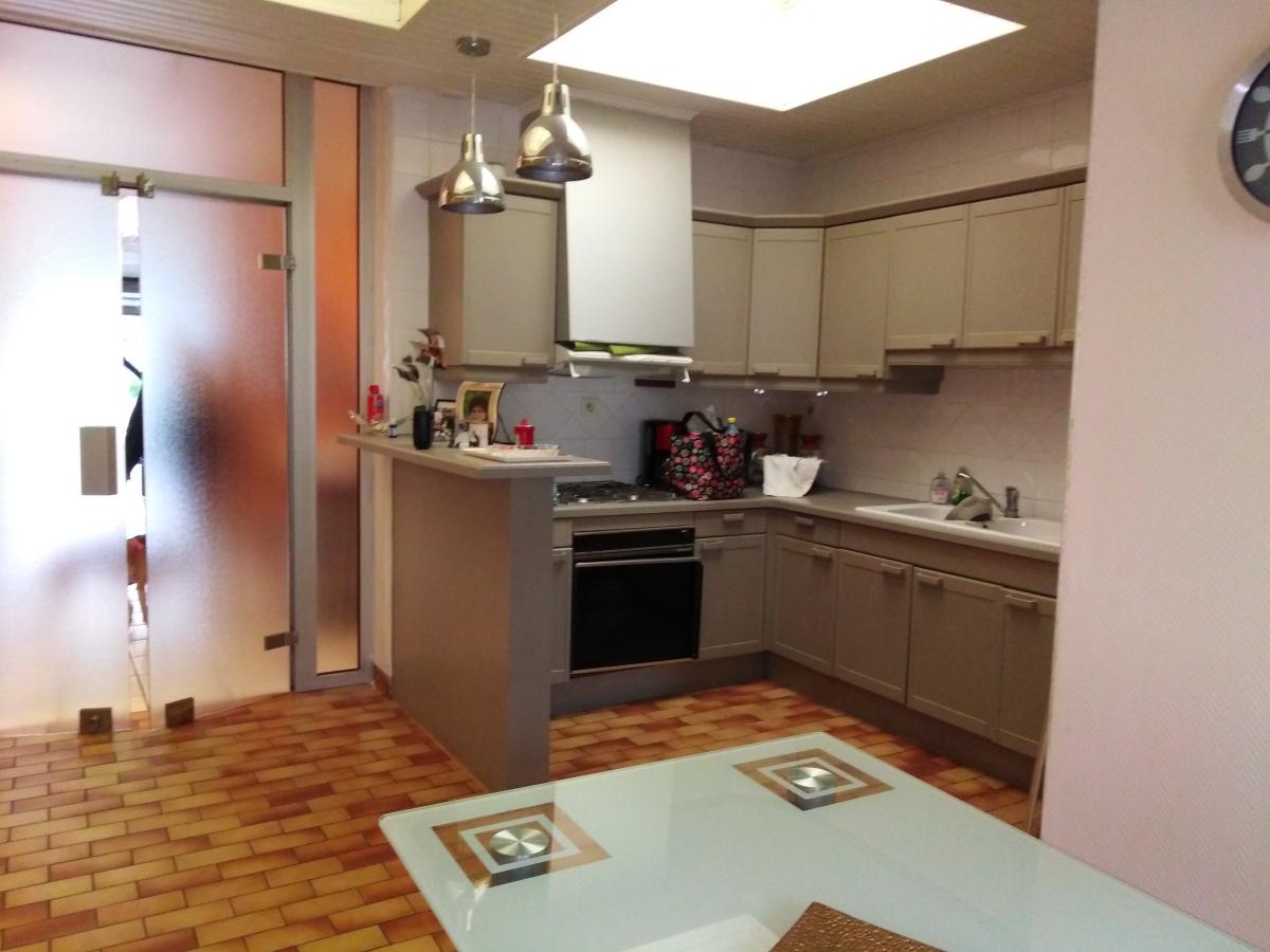 Au rdc : Local commercial, Espace cuisine, espace repas, salle de bains, wc ;