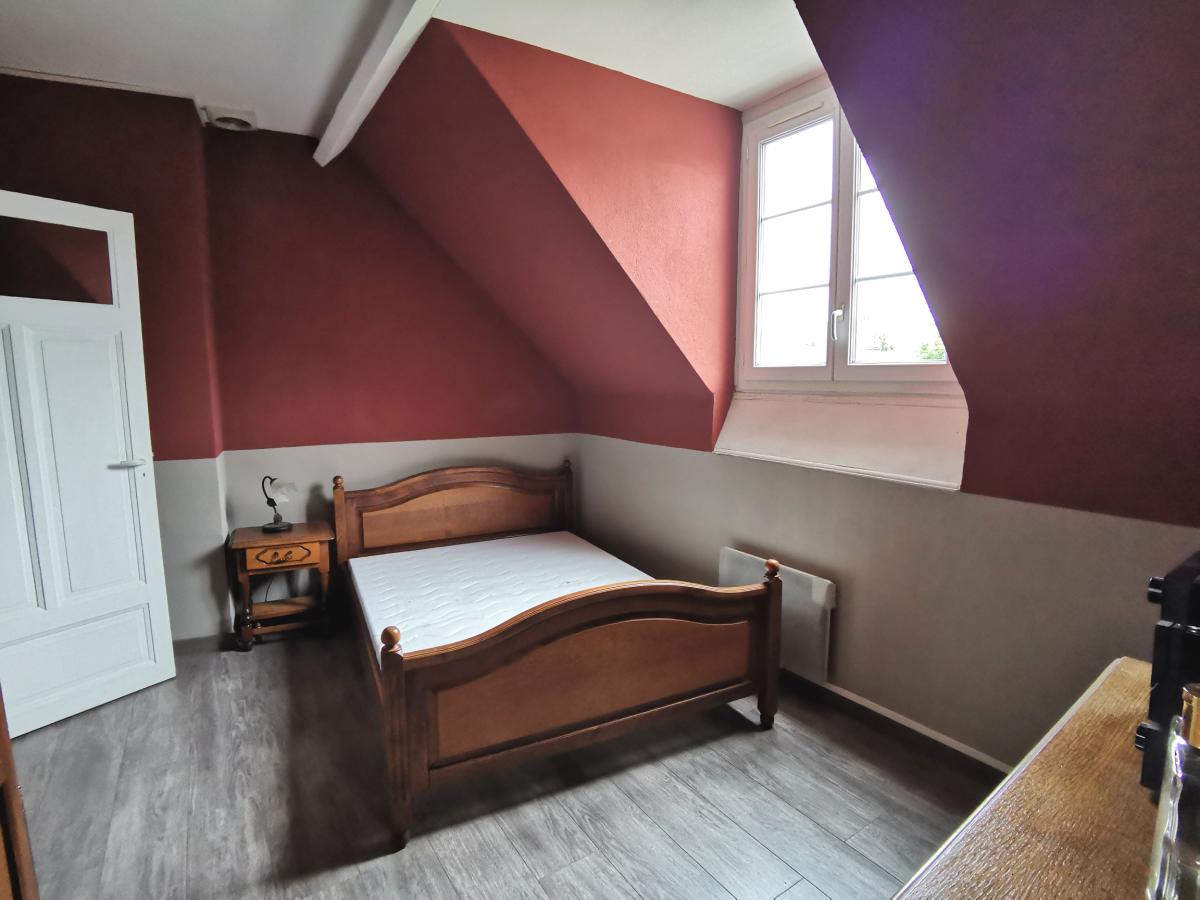 Le deuxième étage abrite une chambre ainsi qu'une salle de bains équipée d'un sanibroyeur.