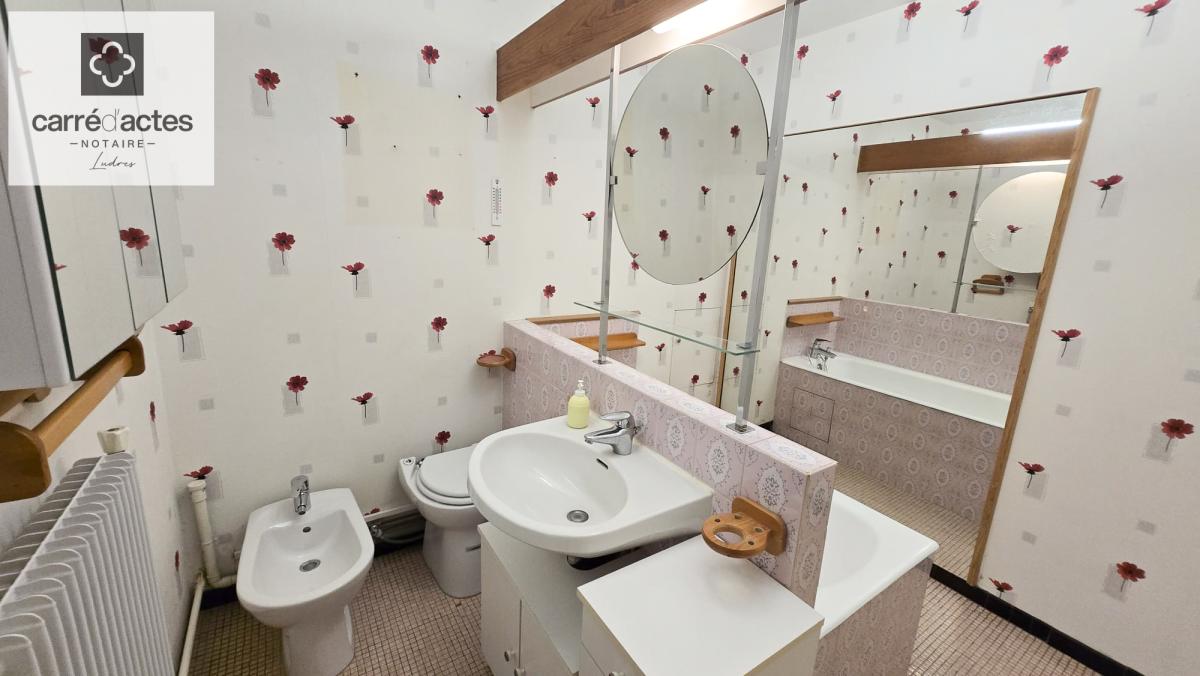 - Salle de bains spacieuse avec baignoire, lavabo, WC et bidet