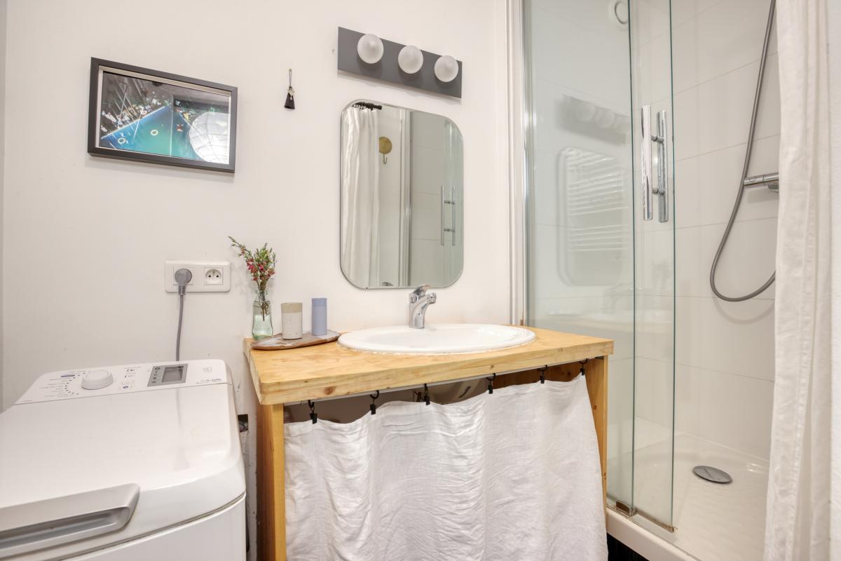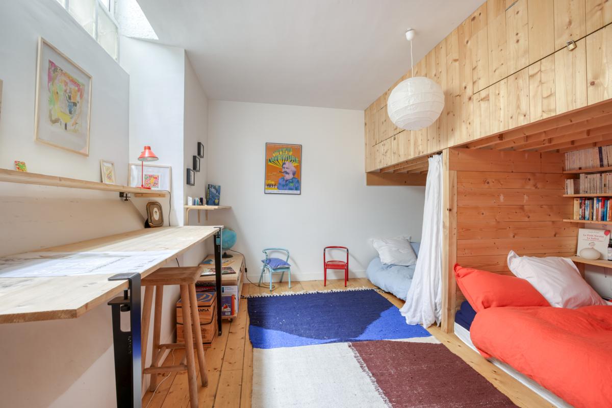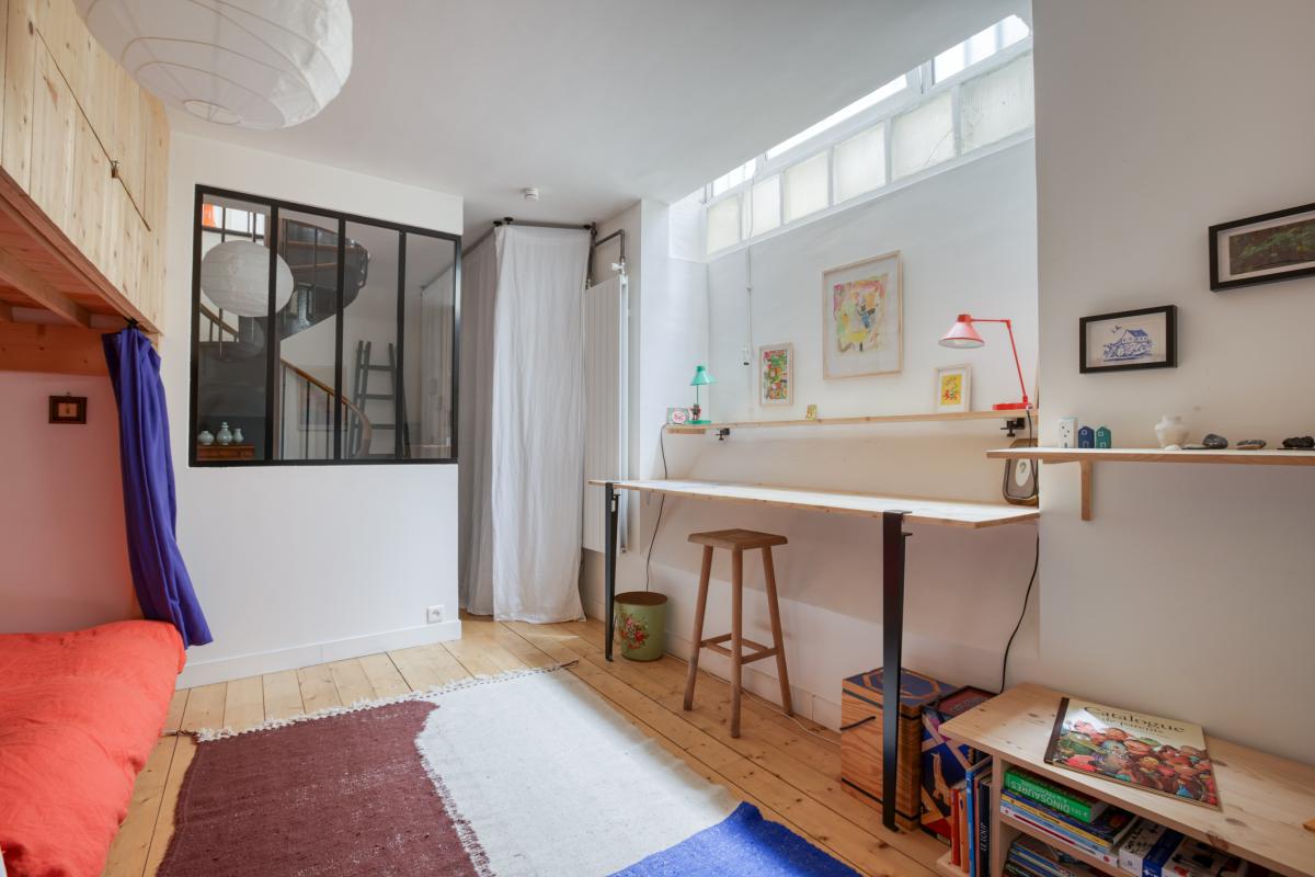 Un escalier en colimaçon au caractère affirmé vous mène au niveau inférieur entièrement aménagé. Ce dernier propose une seconde chambre, une salle d’eau ainsi que des espaces de rangement optimisés, idéal pour une vie de famille, un espace indépendant ou un bureau.