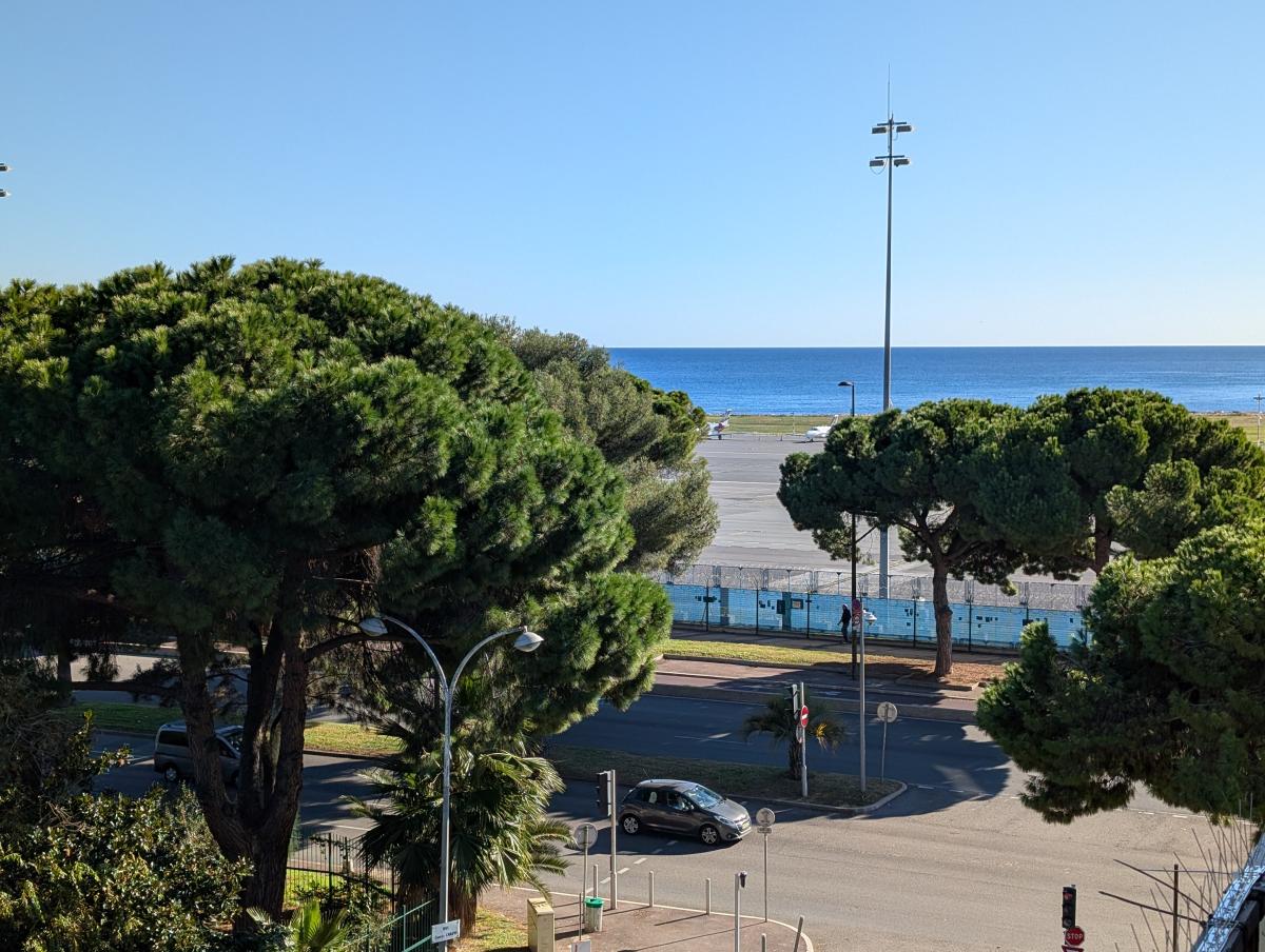 Appartement de type 2 pièces de 48m² loi Carrez + une véranda à l'entrée d'environ 7m², au 4ème étage offrant une jolie vue mer depuis sa terrasse de 7m² environ, possibilité de le transformer en 3 pièces, il se compose d'une chambre avec placard, une cuisine indépendante équipée, une salle de bains, un wc indépendant, séjour climatisé, double vitrage partout, cave. Possibilité d'acheter en plus du prix final un garage double (4,60m de large sur 6,20m de profondeur) avec porte automatique pour un montant 45000€ dont les charges de copropriété s'élèvent à 75€/trimestre et le foncier est à environ 220€ par an. Station de tramway au pied de l'immeuble.