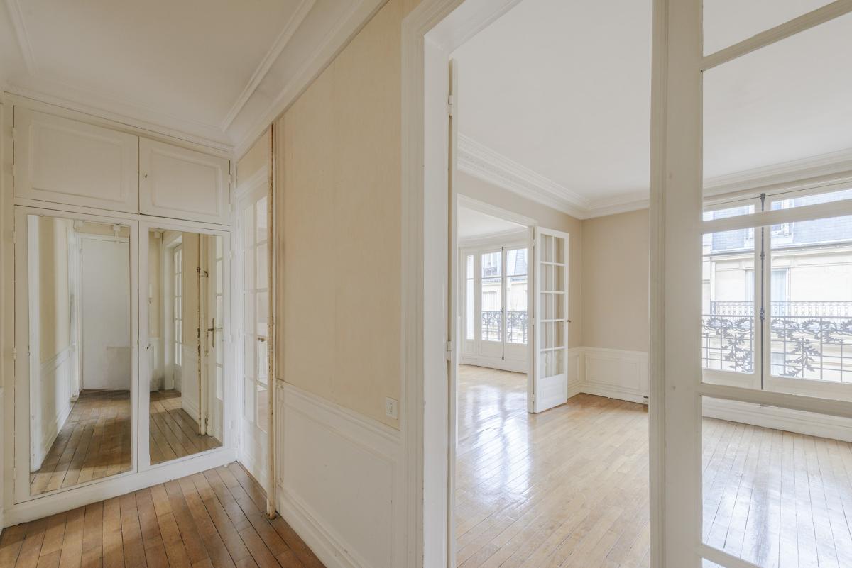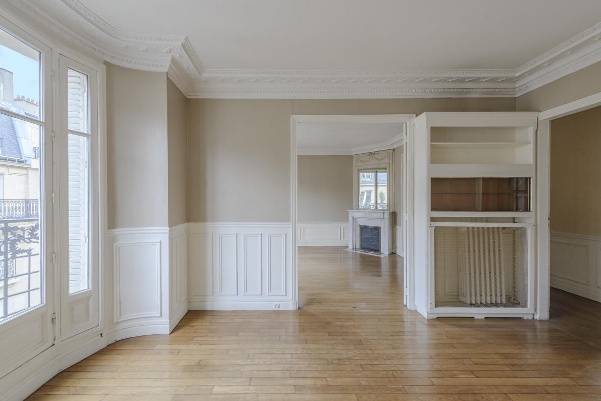 Parquet, moulures, cheminée.