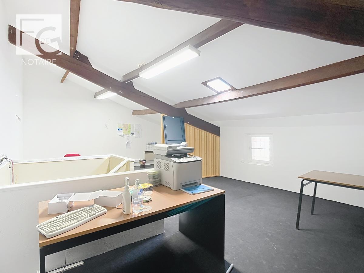 A l'Est: élevée de deux étages sur rez-de-chaussée à usage de bureaux d'archives et salle de repos, d'une surface d'environ 103m2 et comprenant: