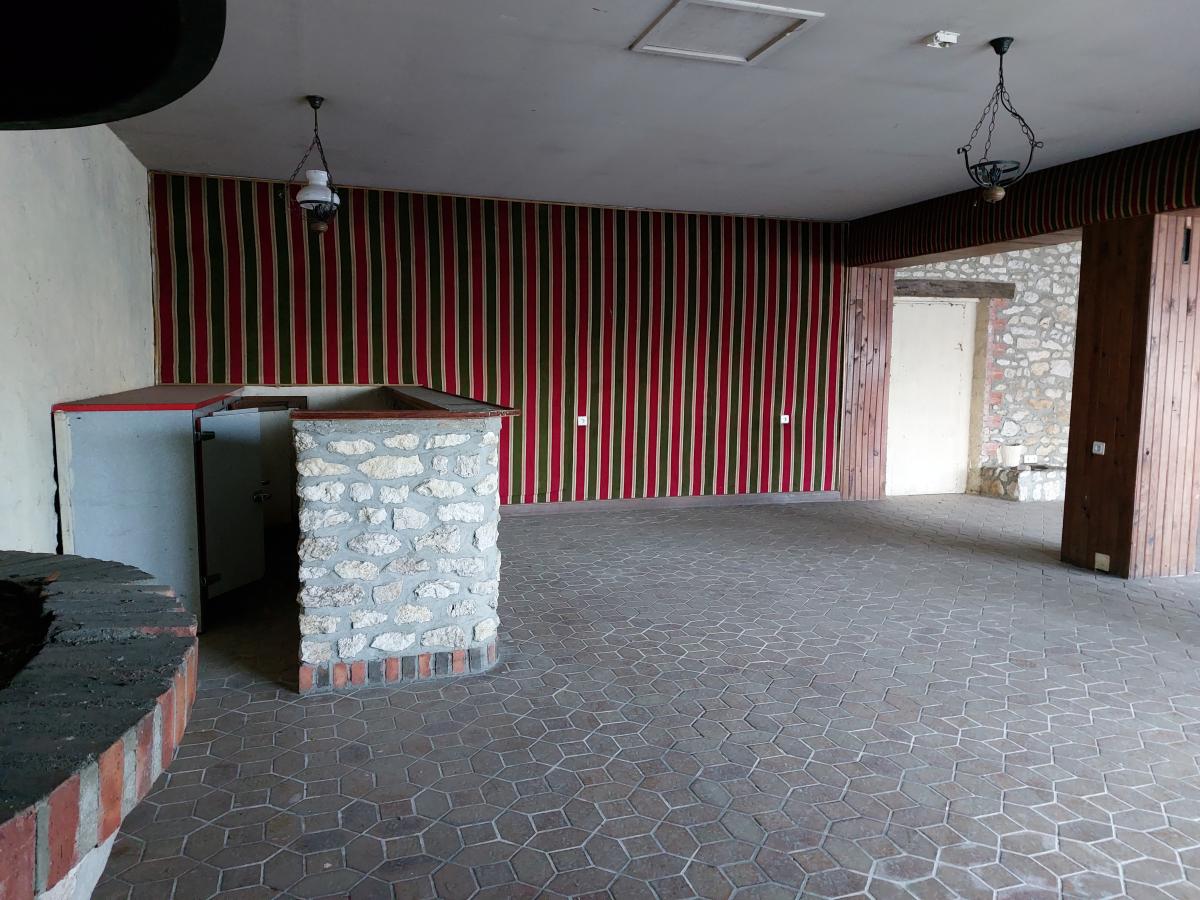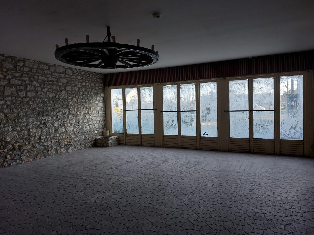 - au rez-de-chaussée : une cuisine, une pièce et une salle de café-restaurant, un cellier