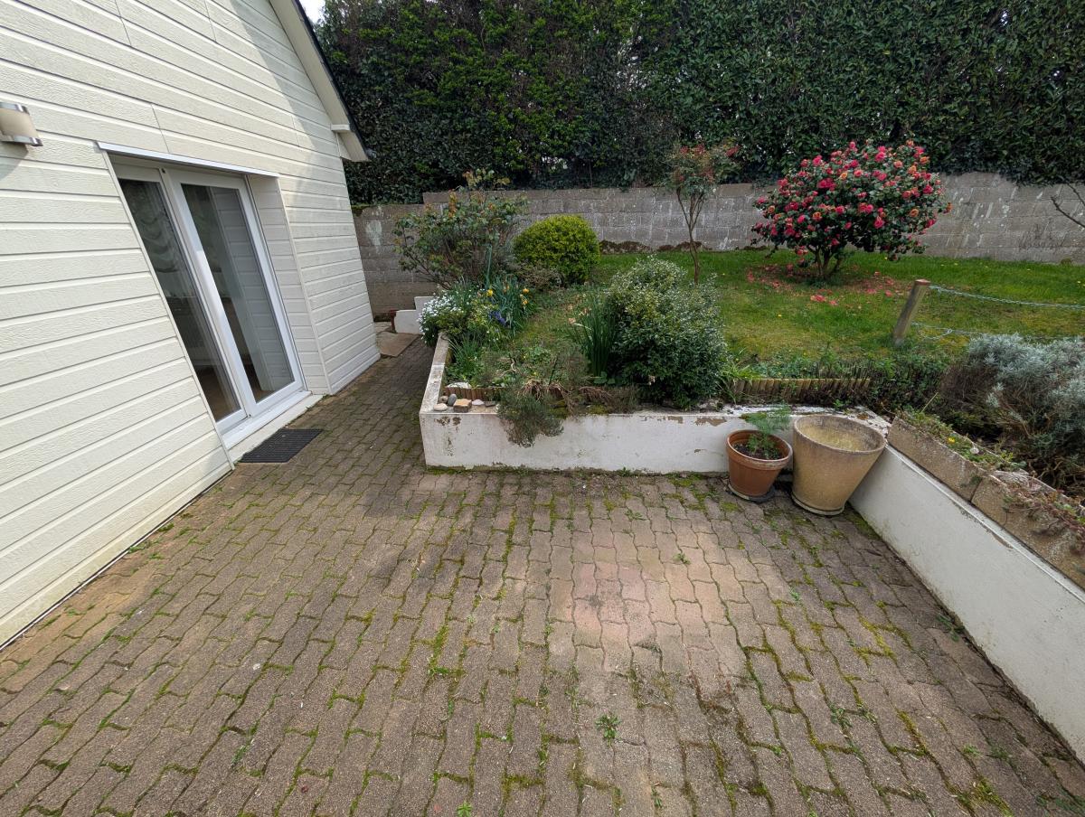 En dessous : une chambre avec un accès direct sur l'extérieur, buanderie avec lavabo et sanybroyeur.