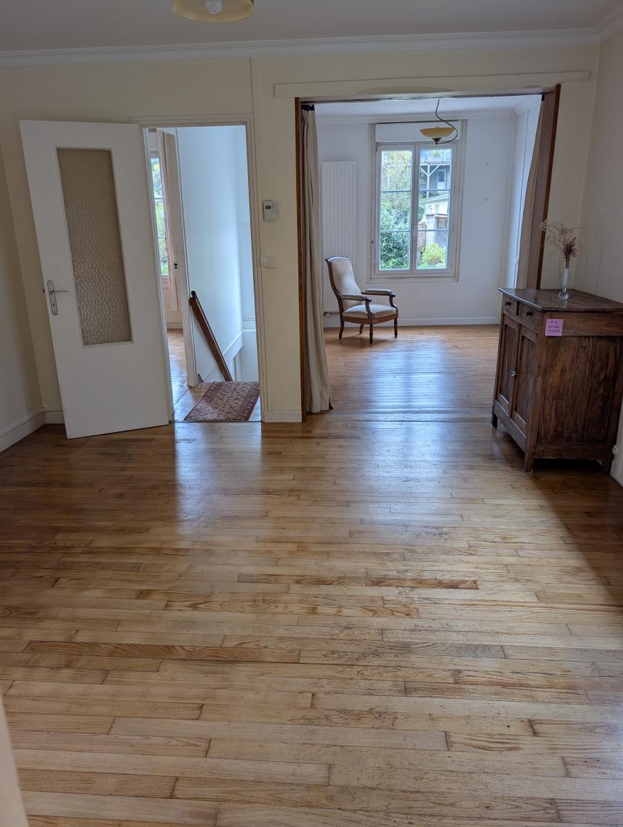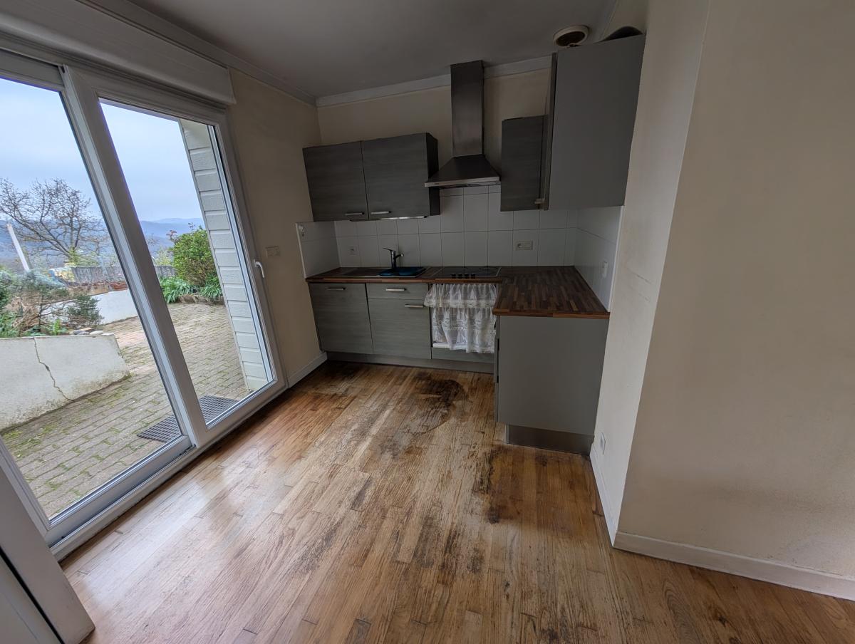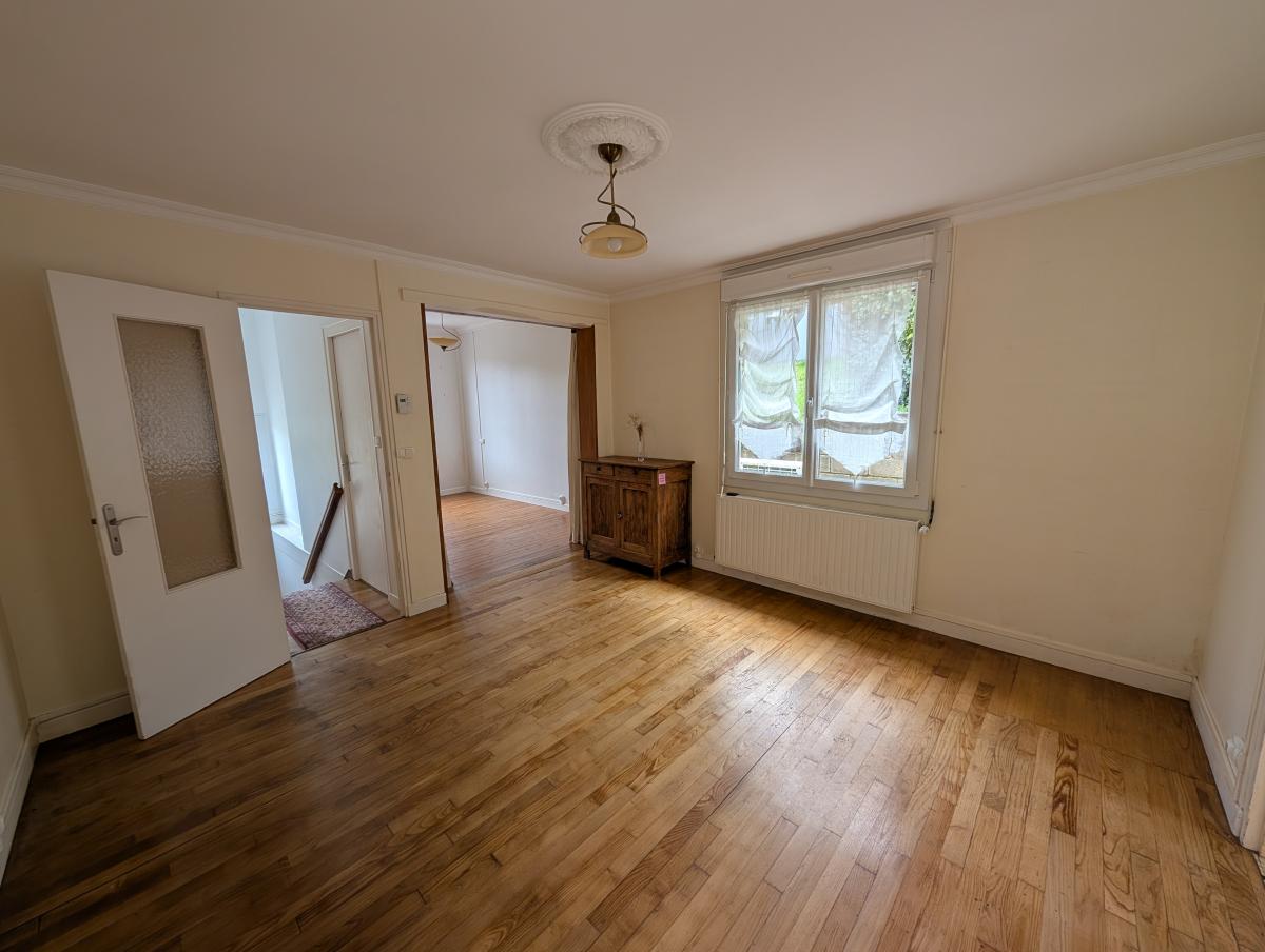 Au rez-de-chaussée : entrée, cuisine aménagée et équipée, salle à manger, séjour, salle d'eau, WC et une chambre.