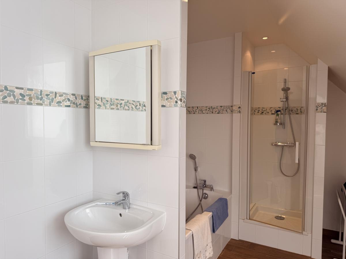 Côté nuit : une suite parentale avec bureau, dressing et salle de bains incluant une douche à l’italienne et WC. Une seconde chambre complète le rez-de-chaussée ainsi que des WC.