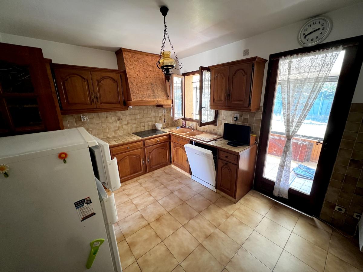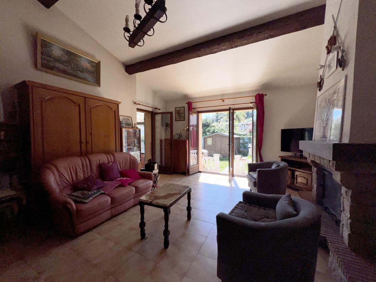 La maison dispose également d’une véranda d’environ 21 m², d’une terrasse, ainsi que de plusieurs dépendances extérieures, dont un garage, un cabanon et différents espaces de rangement. Le garage est accessible directement depuis l’intérieur de la maison.