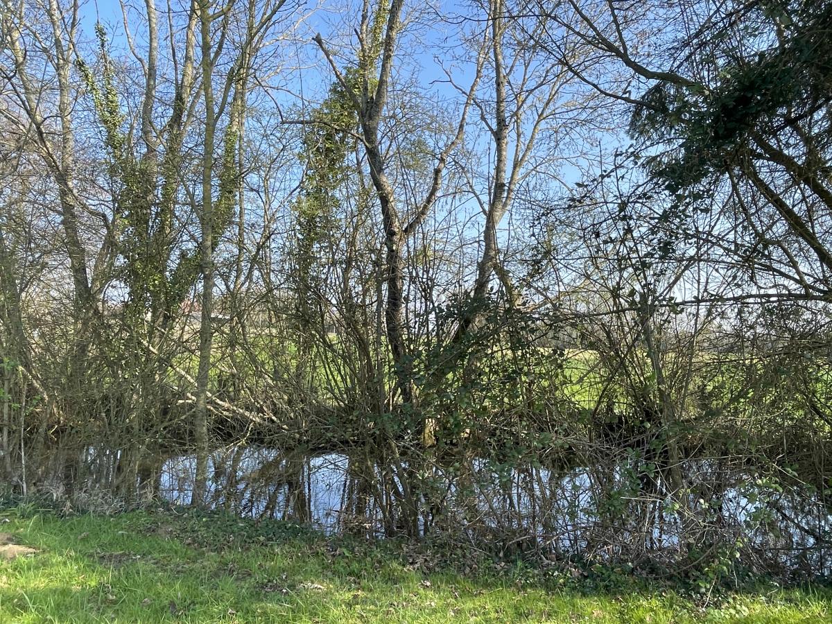 À l'extérieur : cour avec puits, terrain de 3030 m², entouré de champs avec un ruisseau sur un côté et des dépendances de plus de 200 m².