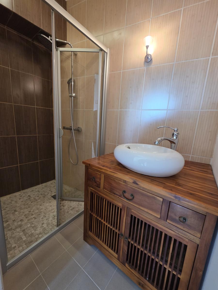 Une suite parentale avec salle d’eau privative, deux chambres avec mezzanine, ainsi qu’une salle de bains équipée d’une baignoire balnéo et branchement pour machine à laver.