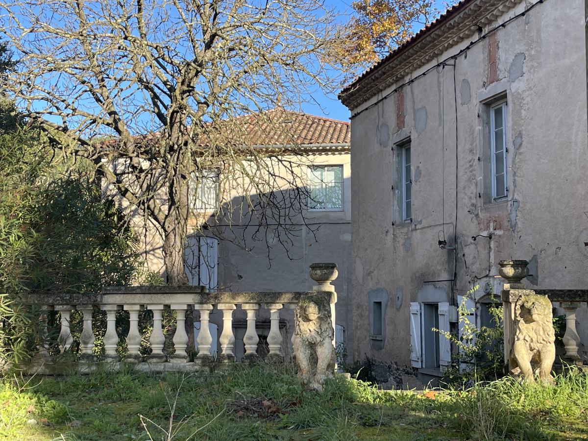 - Une maison de Maître de 294m² sur trois niveaux à rénover avec un parc arboré de platanes centenaires et fontaine en pierre,