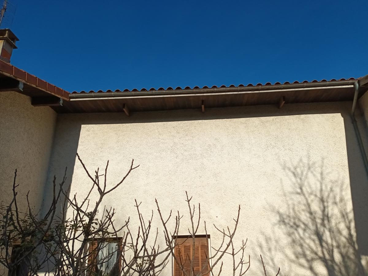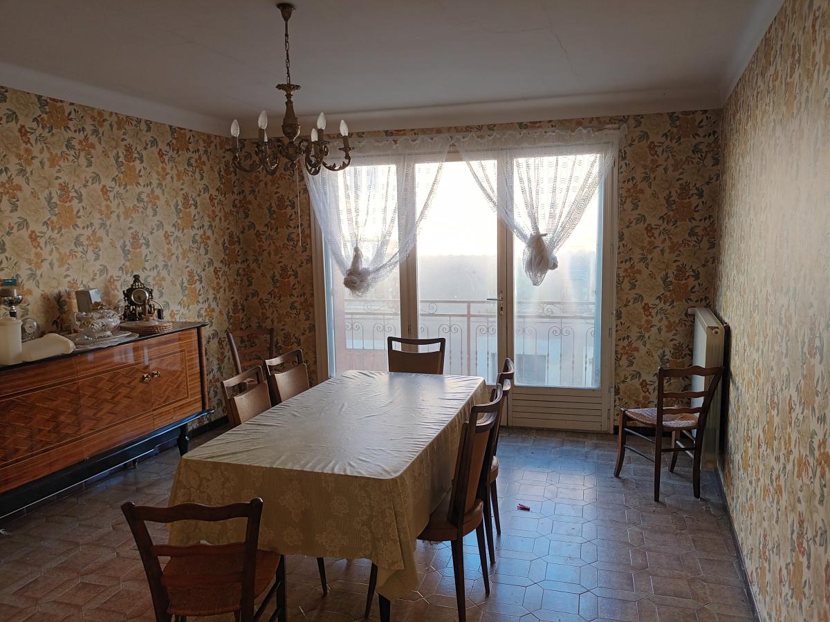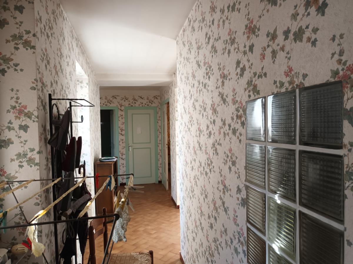 - Au premier étage : escalier en dur donnant sur couloir desservant une cuisine fermée, un salon/salle à manger, un WC, une petite salle de bain et deux chambres.