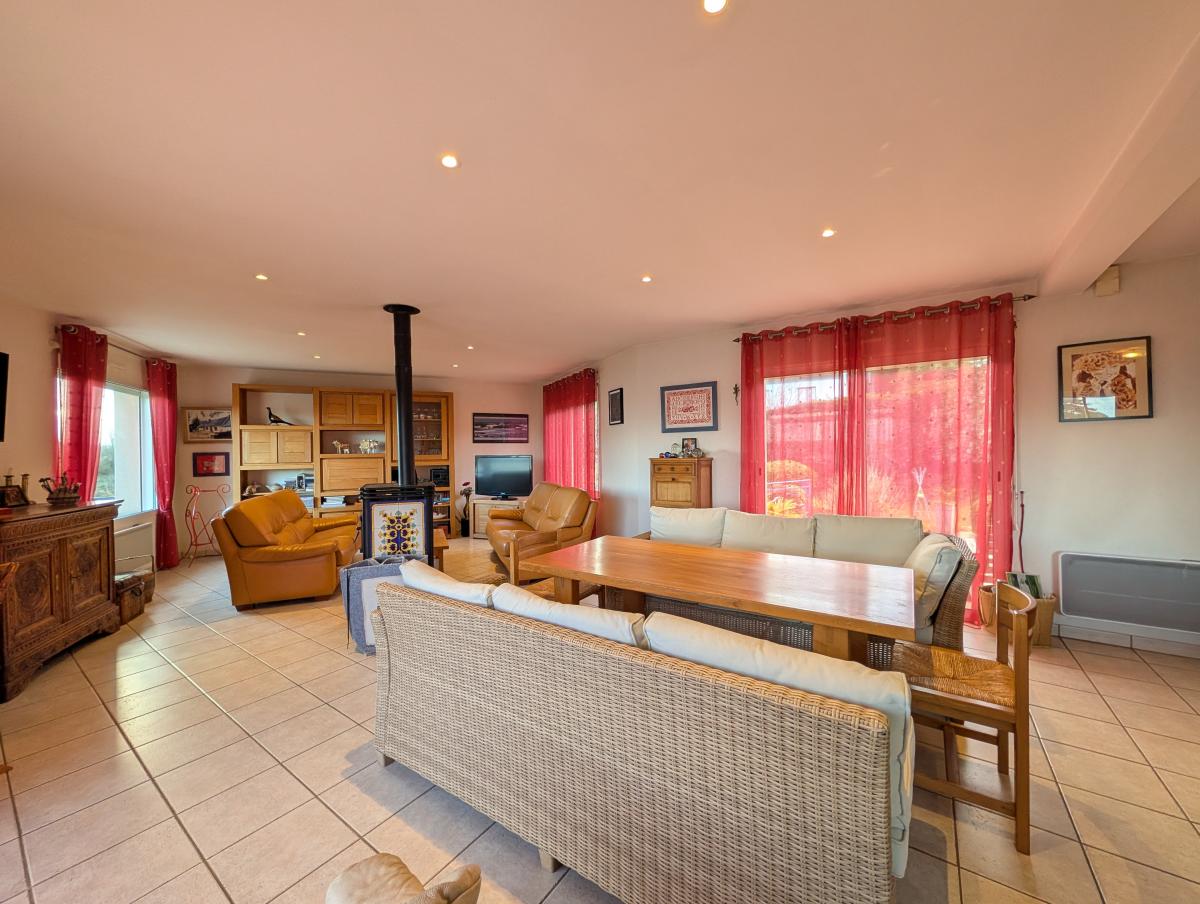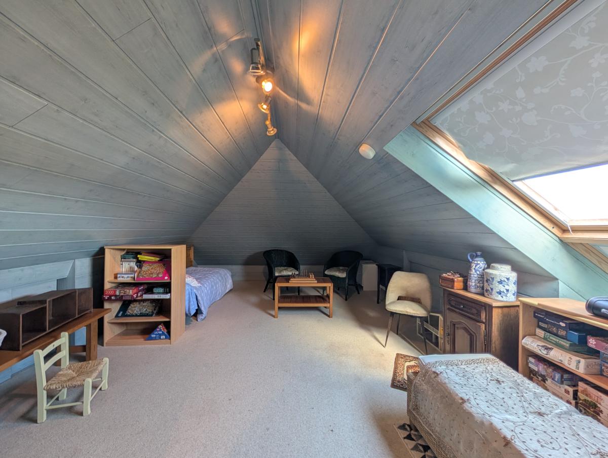 LOCQUIREC, Fond de la Baie, 3km de Plestin les Grèves, à proximité de la plage, belle maison de 1999 avec vue sur mer comprenant entrée, cuisine ouverte sur salon/séjour avec poêle à bois, 2 chambres, salle de bains + douche. A l'étage : 1 grande chambre, grenier. Grande Cave, 1 pièce, douche pour retour de plage, garage, carport. Studio dans le jardin comprenant pièce de vie et salle d'eau avec wc. Terrasse vue mer. Belles prestations.
