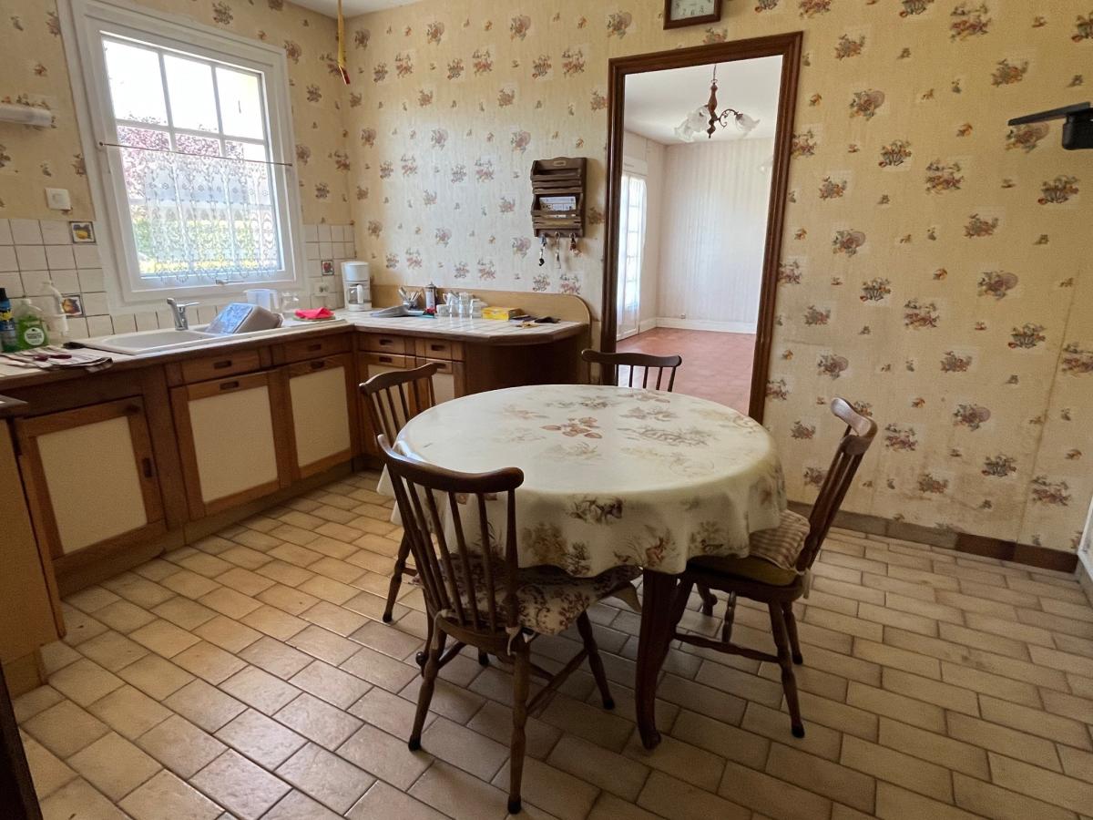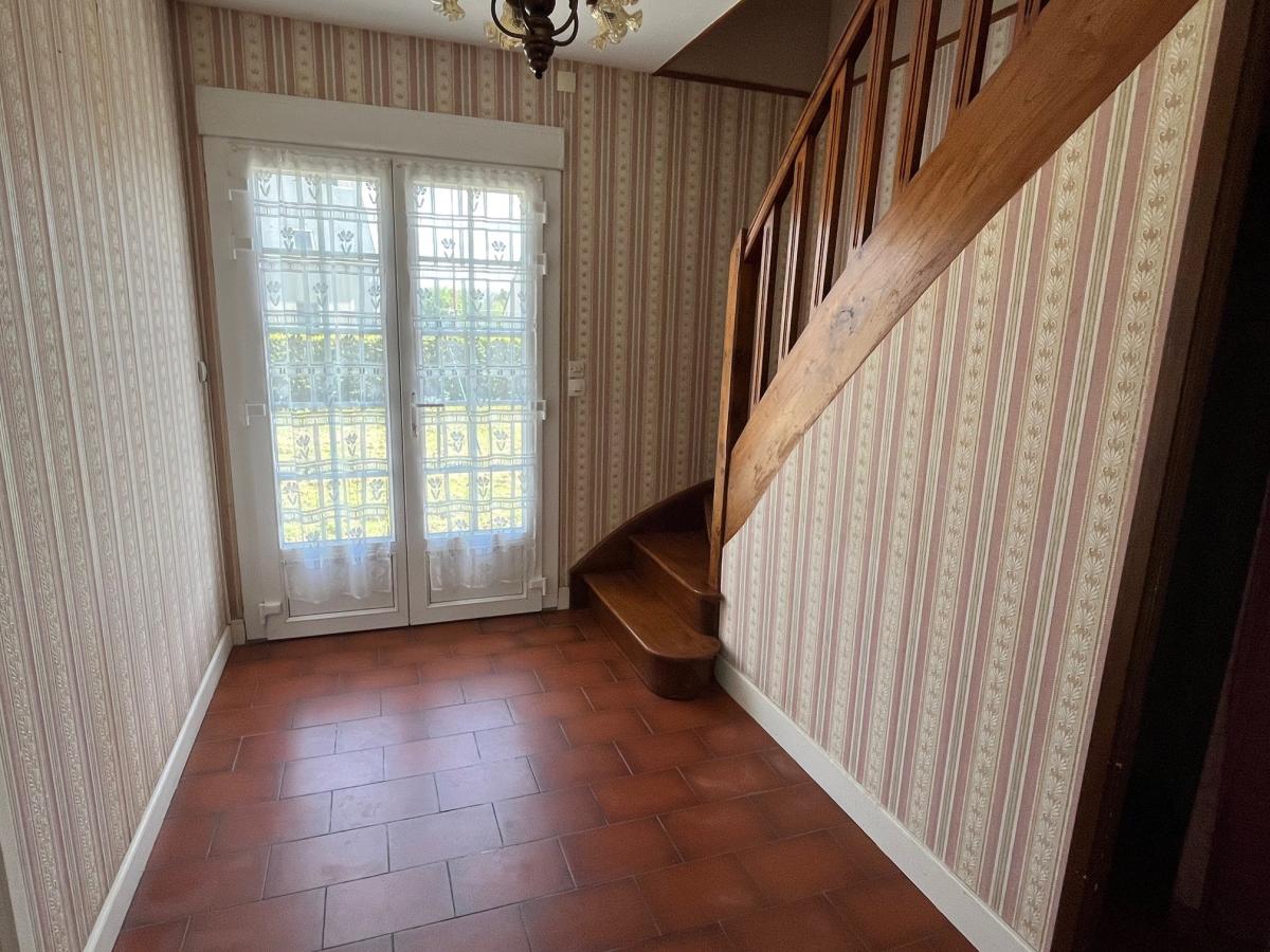 hall d'entrée avec départ d'escalier, séjour avec cheminée insert 25 m², cuisine, une chambre 11 m², salle de douches, wc,