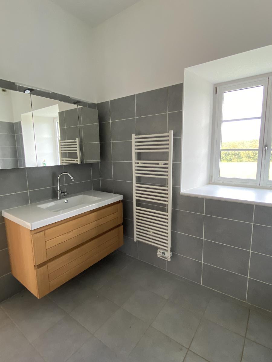RDC : entrée, wc avec lave-mains salon-séjour avec cheminée, cuisine aménagée et équipée, buanderie.