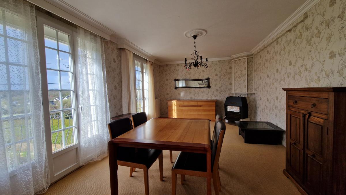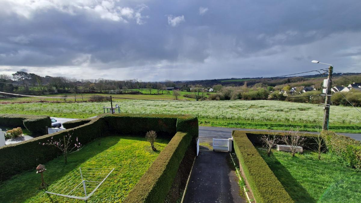 A PLOUJEAN-Commune de MORLAIX- maison lumineuse, parfaitement entretenue, sur un terrain de 589 m². Au rez-de-chaussée : entrée, cuisine aménagée et équipée ouverte sur salon-séjour avec poêle à bois, chambre, salle d'eau rénovée récemment, wc. A l'étage : trois chambres, salle de bains et wc. Sous-sol avec garage. Jardin avec atelier. Fenêtres récentes à isolation renforcée, chaudière au fuel à condensation. Balcon avec vue dégagée sur la campagne.