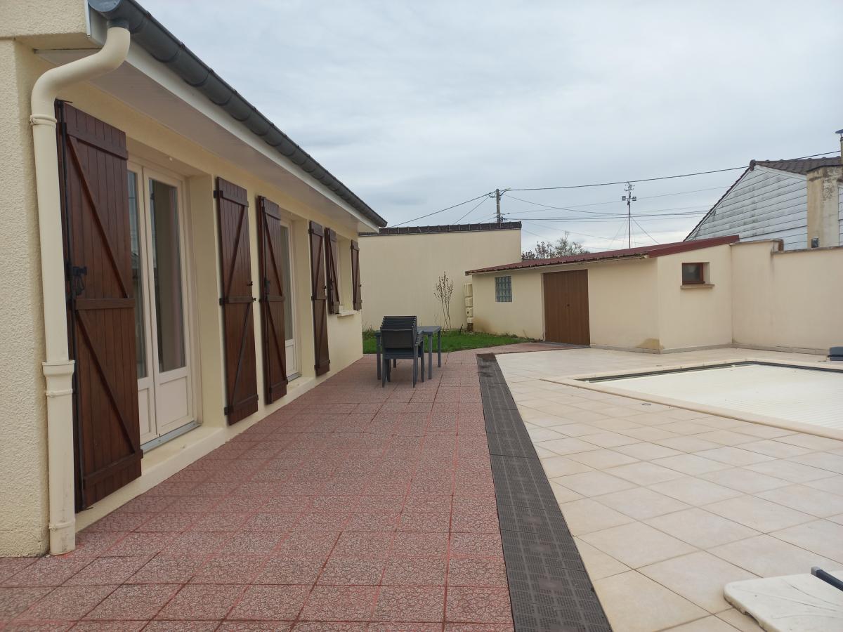 Proche Saint-Dizier, quartier calme (dans une impasse), MAISON DE PLAIN PIED , bien entretenue, offrant un salon-séjour lumineux avec accès direct sur la terrasse et piscine (sans vis à vis), 3 chambres, une pièce, une salle d'eau , double garage, cave. Un extérieur très bien entretenu, bûcher, dépendance, terrain clos et muré.